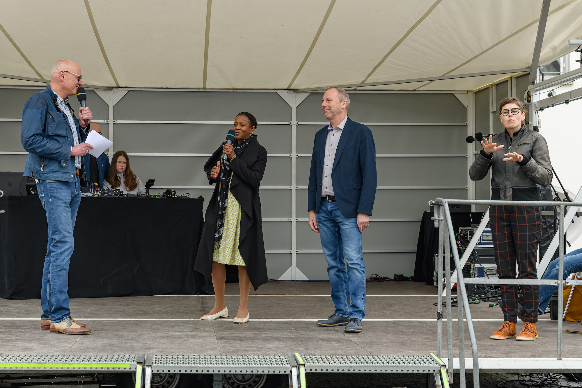 Auch ein Projektchor unter der Leitung von Klaus Brecht (Leiter des HBC-Chors) trat auf. Die Sänger*innen gaben Songs wie „All you need is Love“ von den Beatles zum Besten. Dafür mischten sie sich unters Publikum und begannen als Flashmob mit ihrem Auftritt und gingen nach und nach auf die Bühne, bis letztendlich rund 30 Chormitglieder ihr sängerisches Talent zum Besten gaben. Musikalische Beiträge kamen zudem von der Musikschule Tritonal und mehreren DJs. Auch diese Künstler*innen gingen in ihren Beiträgen auf das Thema Vielfalt ein.