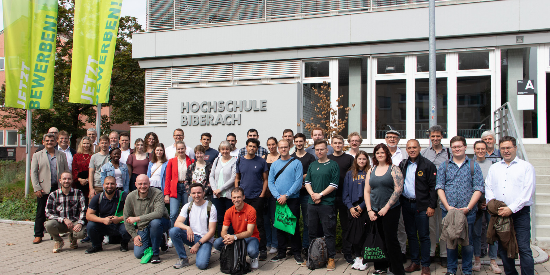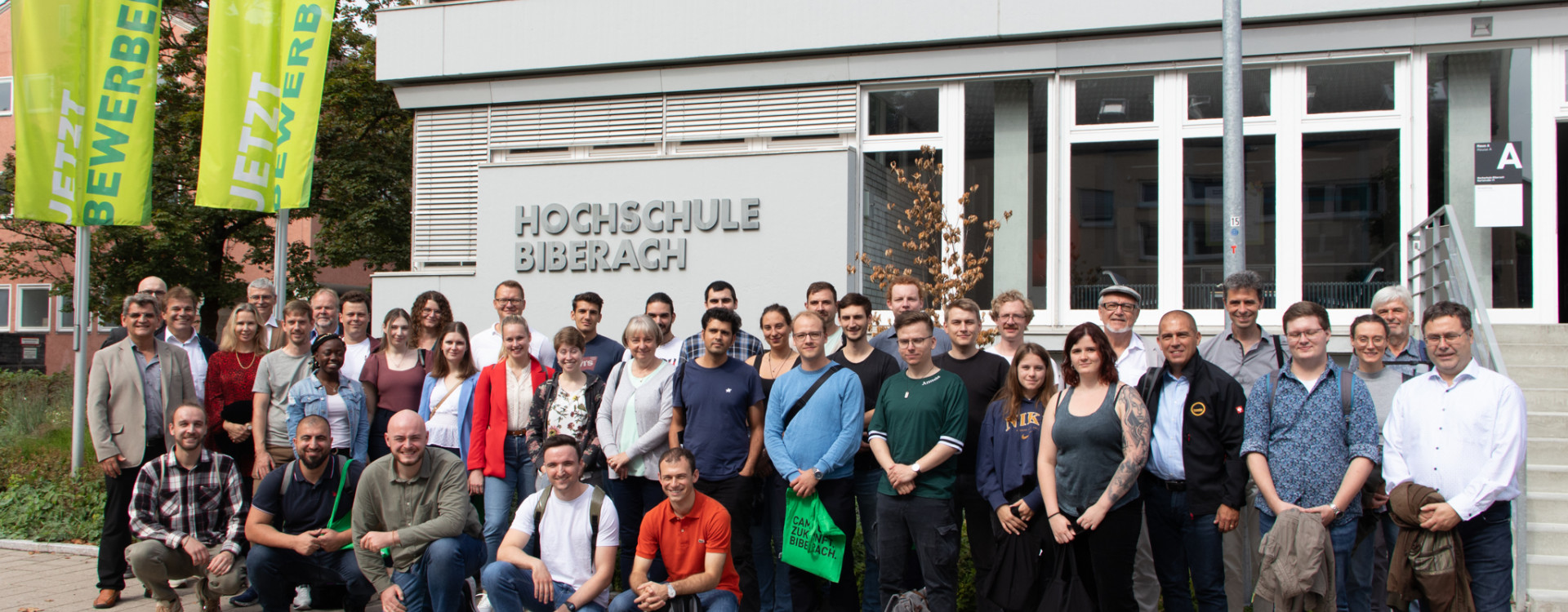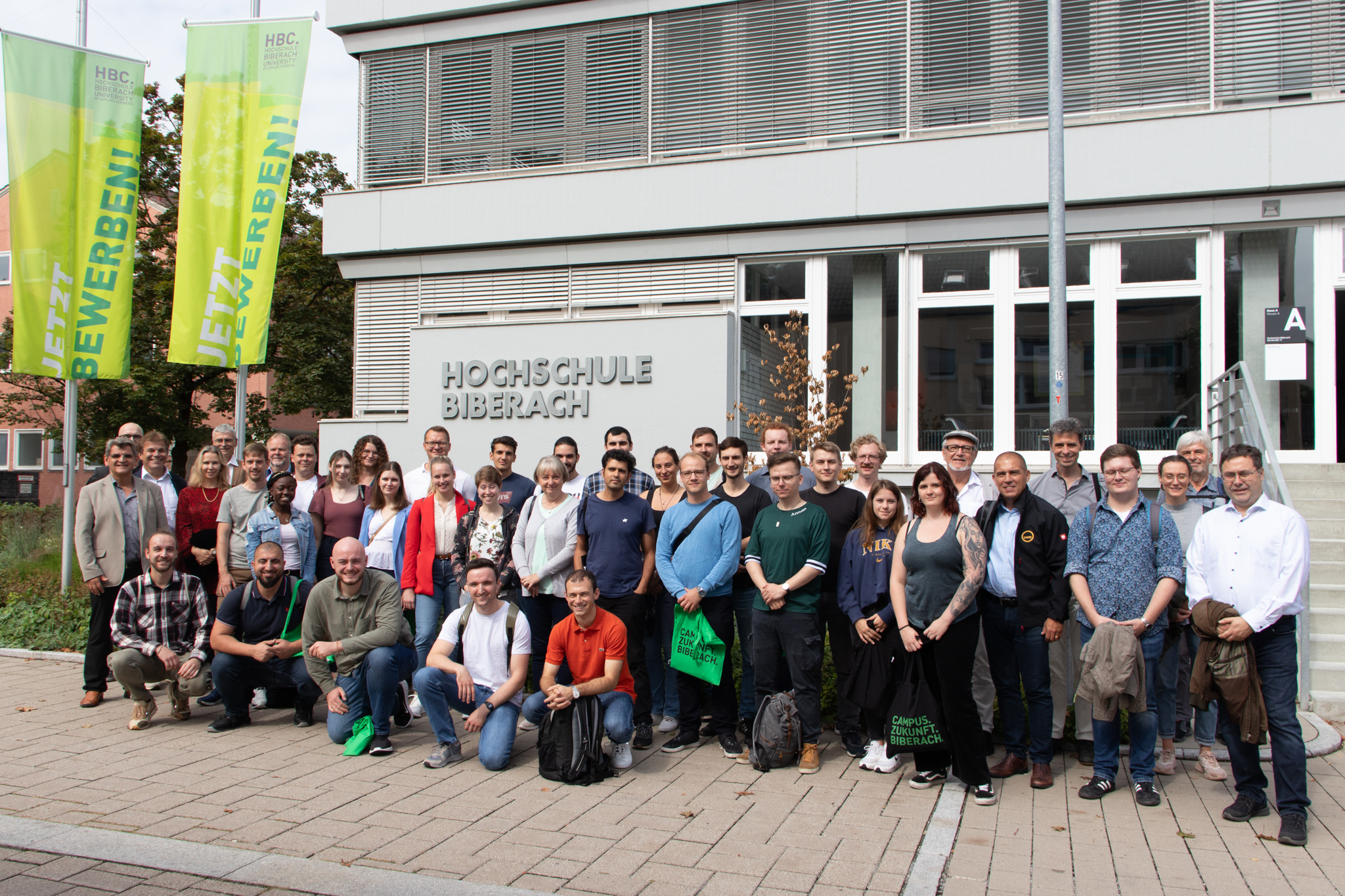 14 Hochschulen aus ganz Deutschland haben kurz vor Semesterstart am Regelungstechnischen Seminar der Baelz-Stiftung teilgenommen, das in diesem Jahr an der Hochschule Biberach stattgefunden hat. Für seine Kolleg*innen aus dem Arbeitskreis Gebäudeautomation und Energiesysteme hatten Professor Dr.-Ing. Martin Becker und seine Kollegin Marion Denninger aus den Studiengängen Energie-Ingenieurwesen sowie Energie- und Gebäudesysteme ein umfangreiches Programm organisiert, das fachlich in aktuelle Themen der Gebäudetechnik entführen und gleichzeitig die Hochschule und ihre Stadt präsentieren sollte.