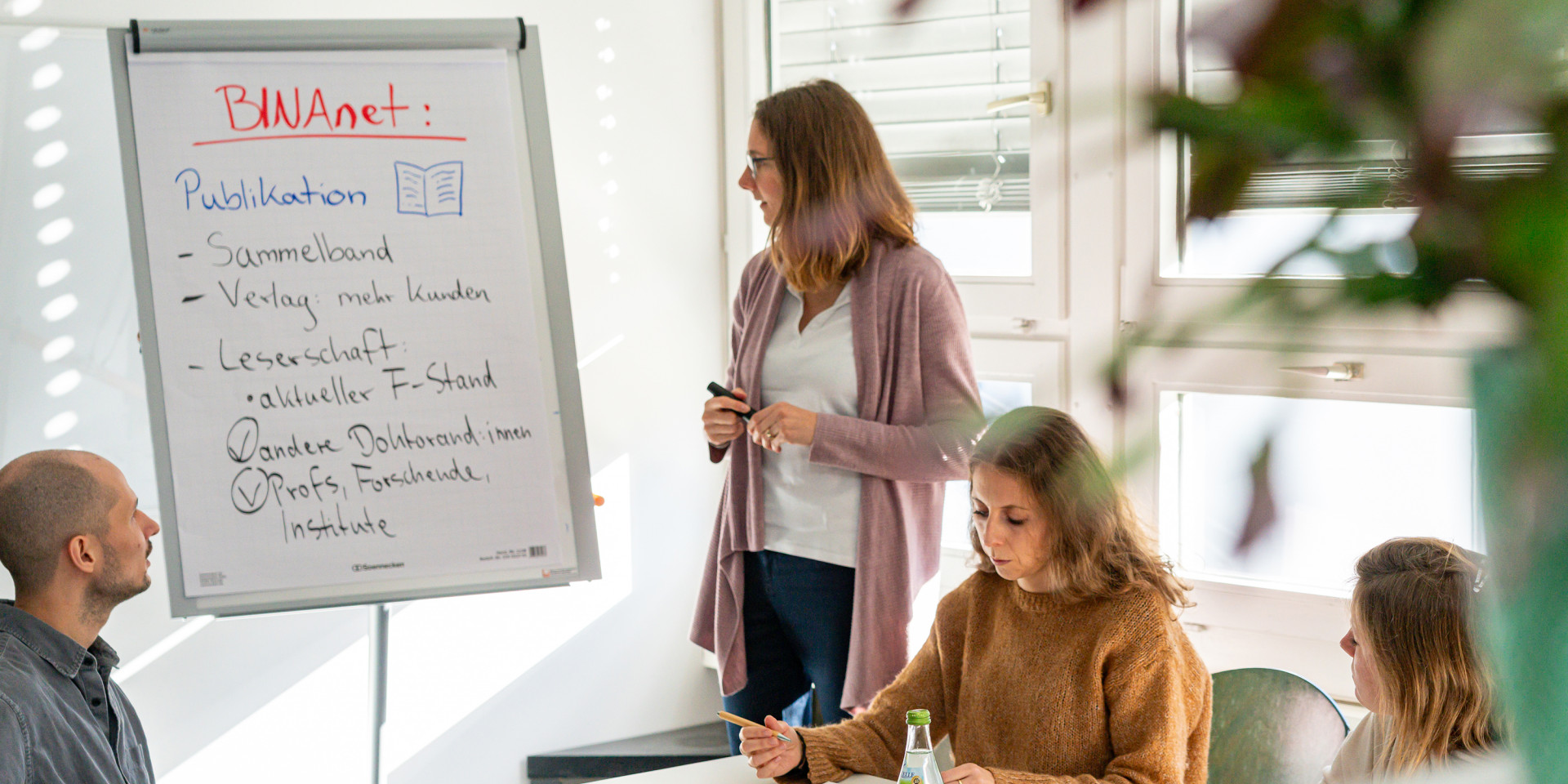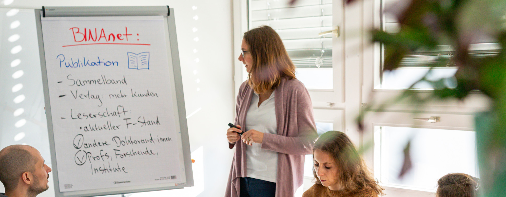 Darüber hinaus bietet BINAnet den jungen Nachwuchsforschenden ein überfachliches Rahmenprogramm, um sie in ihrem Qualifizierungsprozess und bei der Netzwerkbildung zu unterstützen. Expert*innen aus Wissenschaft und Praxis referieren monatlich zu Themen wie zum Beispiel Zeitmanagement, Forschungsfragen und -designs, Wissenschaftskommunikation, Moderation und Interaktion, und stehen als Ansprechpartner*innen rund um wissenschaftliche Karrierewege zur Verfügung.