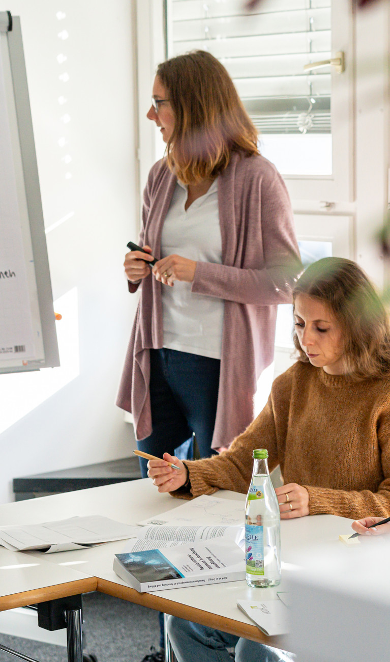 Gemeinsam betrachten wir, wie die praktische Umsetzung gelingt und coachen uns gegenseitig.