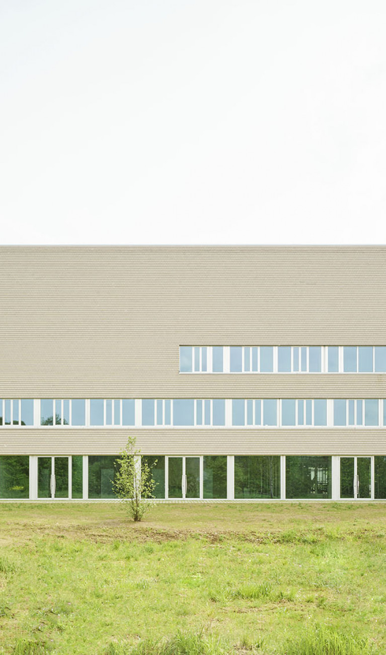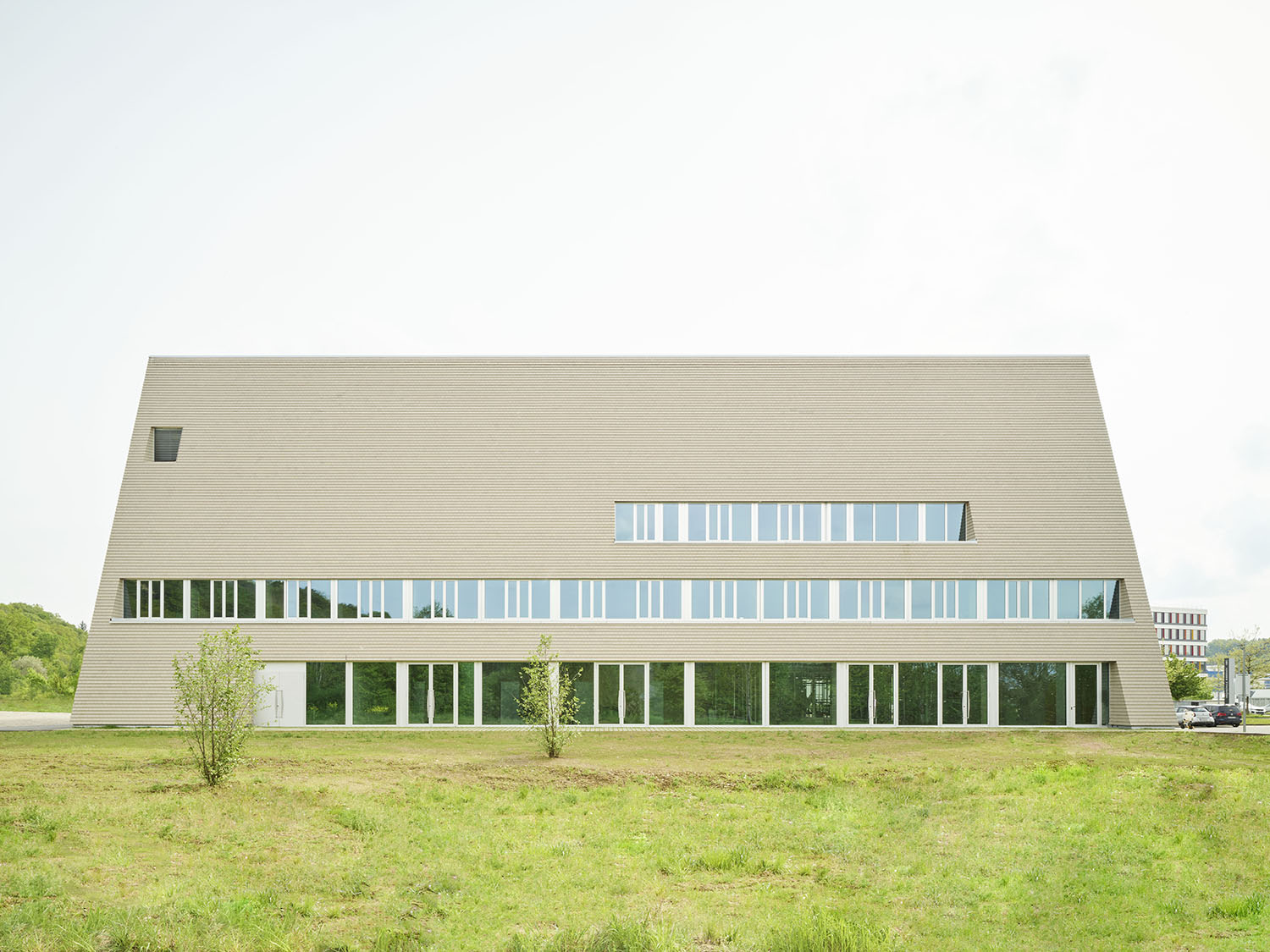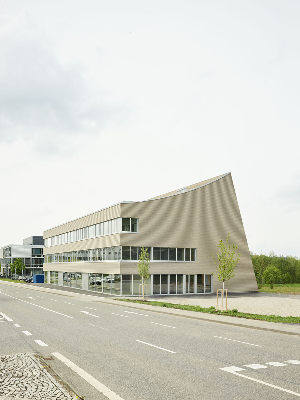 Auch architektonisch ist mit dem ITZ Plus ein Leuchtturm entstanden, dessen äußeres Merkmal die besondere Dachform darstellt, eine auf der ganzen Länge nach Süden ausgerichtete markante Kurve sowie eine Fassade aus regionalen Ziegeln. Das Münchner Architekturbüro Deubzer + Rimmel Architekten schuf mit seinem Entwurf „einen veredelten Rohbau mit ausgeprägtem Werkstattcharakter, der den wechselnden Anforderungen und Zielsetzungen des ITZ Plus standhalten wird“, erläuterte Professor Maximilian Rimmel, der an der HBC im Studiengang Architektur Entwerfen und Raumgestaltung lehrt, bei der symbolischen Schlüsselübergabe.