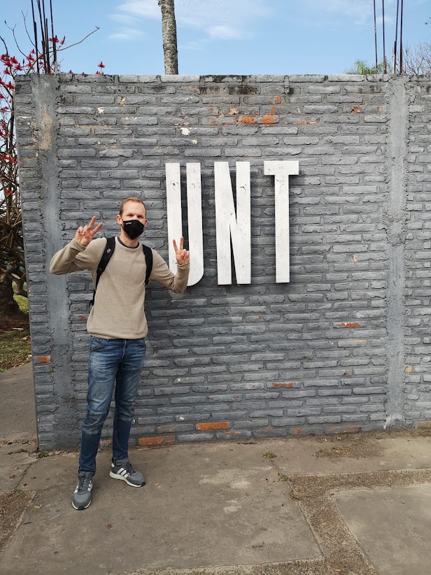 Foto: HBC-Student Michael Weiß vor der Universidad Nacional de Tucumán (©privat)