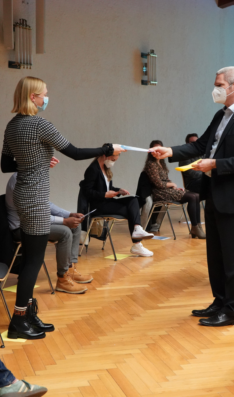 Kellnern, Verkauf von Kinotickets, Aushelfen auf dem Weihnachtsmarkt – pandemiebedingt sind in den letzten Monaten zahlreiche Möglichkeiten, sich etwas dazuzuverdienen, ausgefallen. Das trifft auch die Studierenden der Hochschule Biberach hart. Umso wichtiger sind da Sicherheitsnetze wie beispielsweise Stipendien geworden. Dank 26 Stifterinnen und Stifter können sich jetzt 40 Studierende über ein monatliches Fördergeld von 300 Euro freuen. Das sogenannte Deutschlandstipendium wird dabei anteilig von FörderInnen und dem Bundesministerium für Bildung und Forschung gezahlt. Ausgewählt werden dafür Studierende, die neben guten Leistungen im Studium auch ein ehrenamtliches Engagement zeigen.