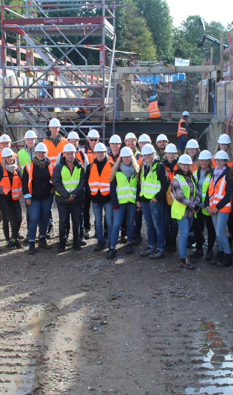 Letztere fand Emma Siegle besonders beeindruckend. „Die bestehende U-Bahnlinie wird derzeit verlängert und die Bauarbeiten waren bei unserem Besuch bereits in vollem Gange. Durch ausführliche Erklärungen der Projektleiter war es möglich, das im ersten und zweiten Semester erlernte Wissen gut zu verknüpfen und die Theorie in der Praxis zu erleben.“ Durch die Besichtigung der Baustelle konnten die Studierenden sehen, wie eine innerstädtische Baustelle mit all ihren Schwierigkeiten gemeistert wird. Die Absicherung der Nachbargebäude durch Baugrubensicherung, die enge Lage für die Baustelleneinrichtung und der natürlich trotzdem weiterhin funktionierende Straßen- und Schienenverkehr haben Eindruck hinterlassen.