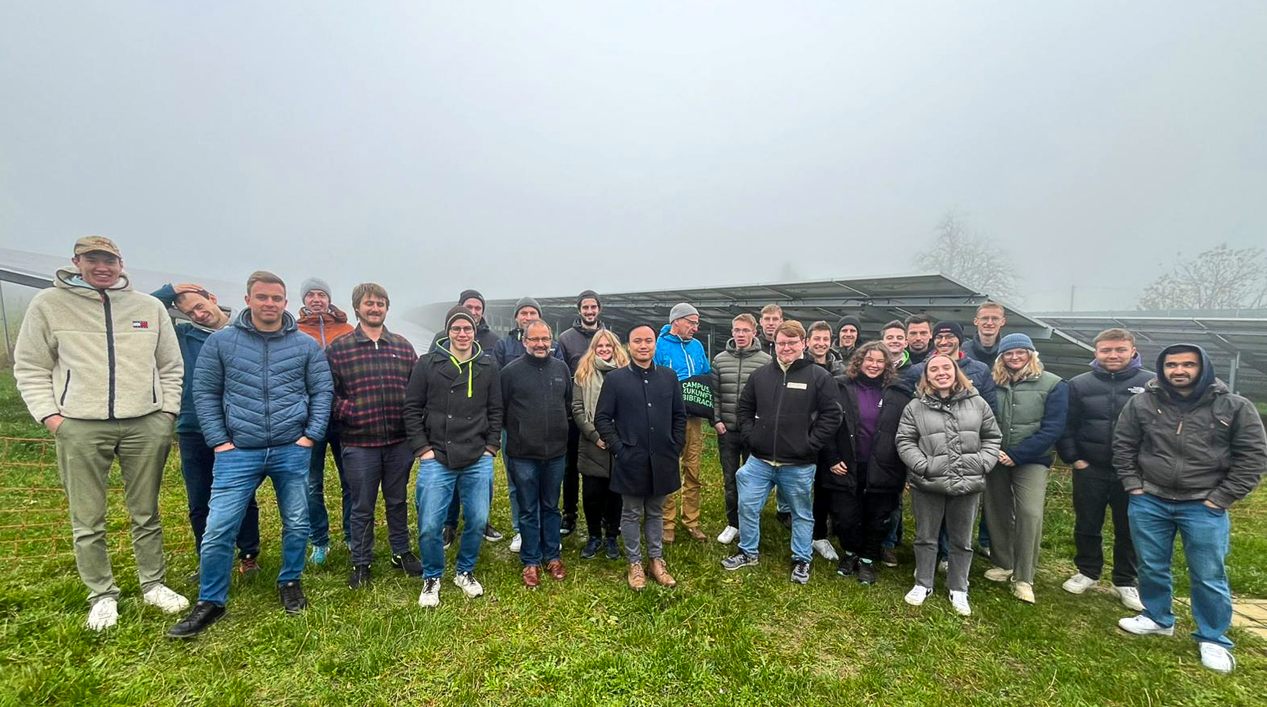 Abgerundet wurde der Tag mit dem Besuch einer Freiflächen-Photovoltaikanlage auf dem Berghof, einem Demeter-Bauernhof. Diese Anlage kombiniert landwirtschaftliche Nutzung mit erneuerbaren Energien und vermarktet den produzierten Strom über ein Power-Purchase-Agreement (PPA) und ist ein Vorzeigeprojekt für die Region Tengen, die bereits mehr Energie erzeugt, als sie verbraucht. Es zeigt, wie Landwirtschaft und erneuerbare Energien erfolgreich kombiniert werden können.