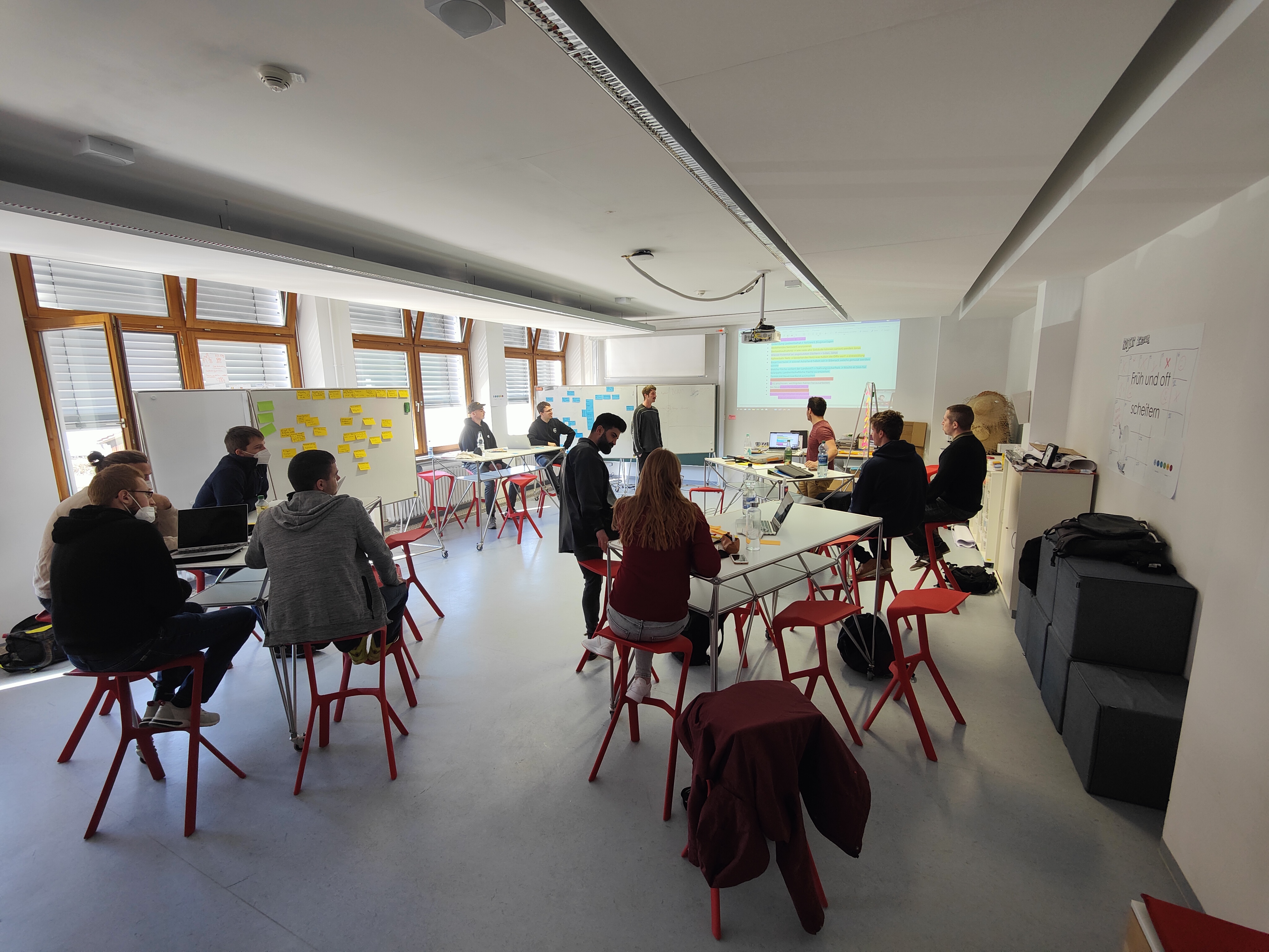 16 Studierende haben sich dafür in unterschiedliche Teams aufgeteilt: Die einen verschafften sich auf Basis von Daten der Energieagentur Biberach einen Überblick über die Verbräuche, eine andere Gruppe prognostizierte diese in die Zukunft, das dritte Team befragte die Menschen im Landkreis nach ihrer Meinung und eine vierte Gruppe befasste sich mit Softwareprogrammen, mithilfe derer sich verschiedene Lösungen anschaulich darstellen lassen. In einer sehr frühen Phase ihres Projekts begaben sich die Studierenden ins Design Thinking Lab der Hochschule. Hier prototypten, also überprüften sie ihre Ideen anhand von vereinfachten Versuchsmodellen und konkretisierten ihre Überlegungen für einen Energiewendekonfigurator, in dem sie alle Informationen zusammenführen und die Bürger*innen im Landkreis motivieren wollen, einen Beitrag zur Energiewende zu leisten.