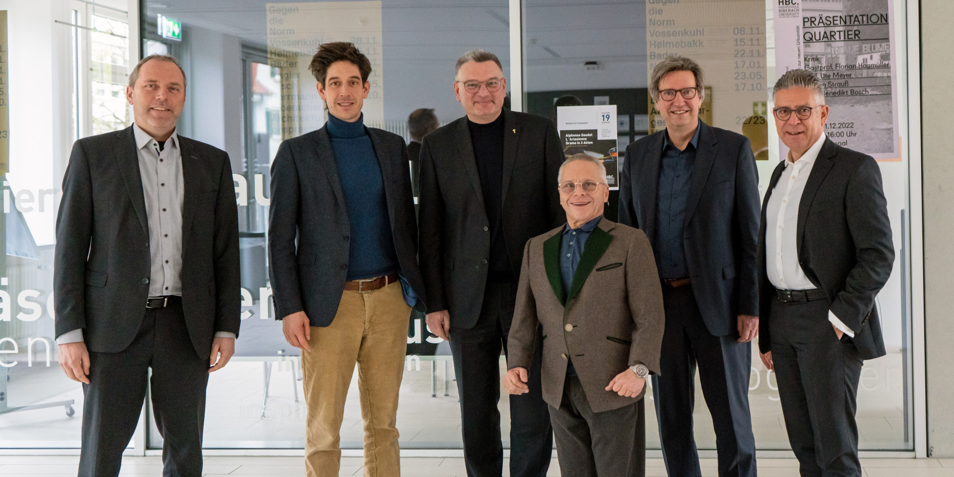 Auf dem Bild zu sehen sind die Mitglieder des Kuratoriums für die strategischen Partner in der Raumschaft: (v.l.n.r.): Kanzler Thomas Schwäble, Landrat Mario Glaser, Oberbürgermeister Norbert Zeidler, Rektor André Bleicher, Martin Bücher, Vorstandsvorsitzender der Kreissparkasse Biberach sowie in der Mitte Johannes Remmele, IHK-Vizepräsident sowie Inhaber der SÜDPACK Group Ochsenhausen