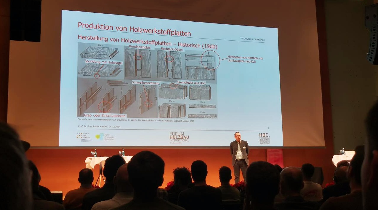 Prof. Dr.-Ing. Patrick Aondio hat gestern einen viel beachteten Vortrag zum Thema „Produktion von Holzwerkstoffplatten unter Verwendung mechanischer Holzverbinder“ gehalten, weitere HBC-Auftritte haben heute der Forschungsmitarbeiter Valentin Knöpfle zum Thema Digitalisierung im Holzbau (FE-modeling ands calibration of a long-span wooden beam ceiling by menas of vribiation measurement) sowie Master-Student Pascal Fröhlich zum Thema KI im Holzbau (Artifical Intelligence in Timber Construction: Development and Adaption oft he Historic Tachenhauser Farm Estate).