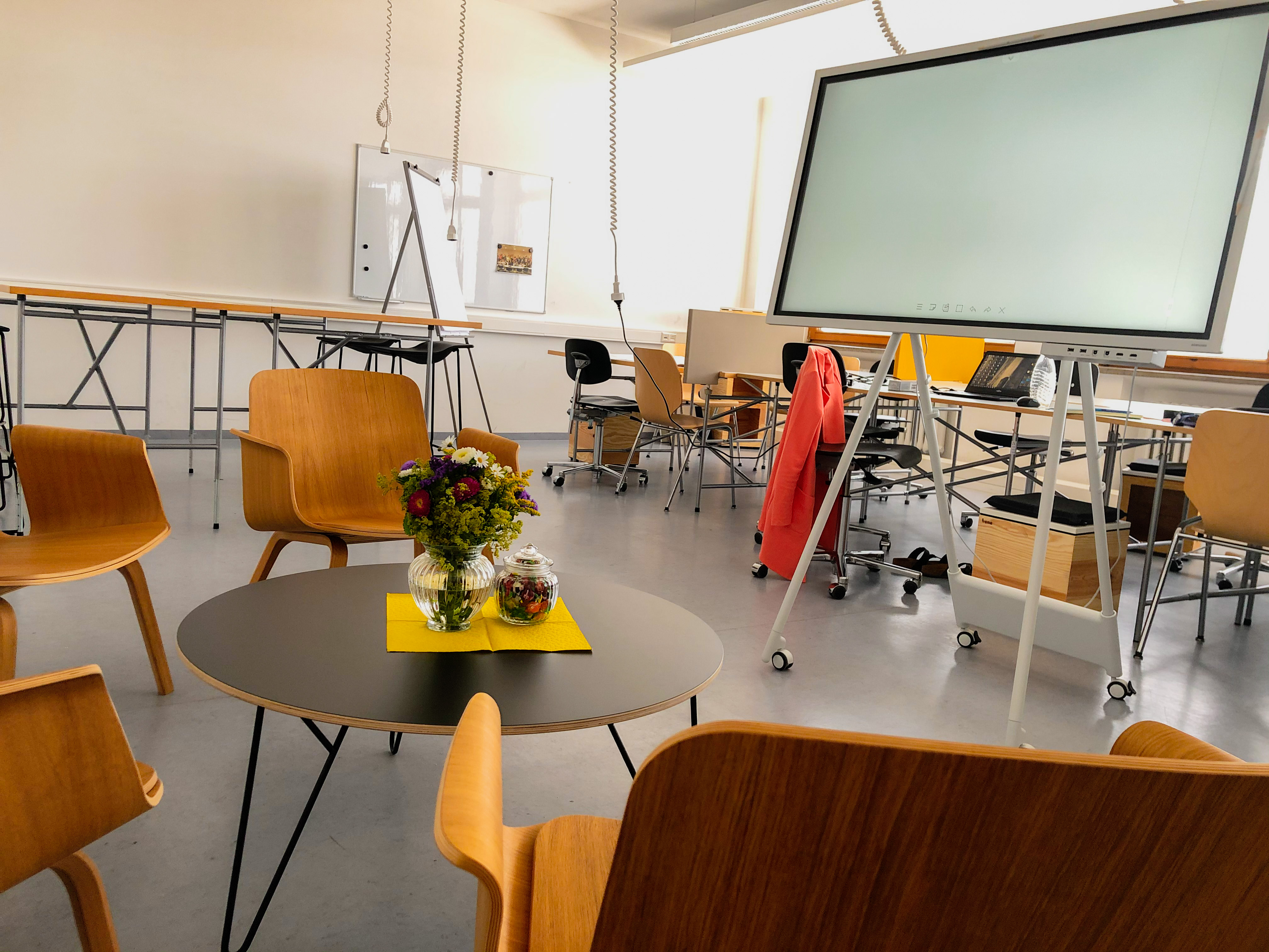 Bei Bedarf unterstützen wir außerdem mit der Bereitstellung von digitaler Infrastruktur (Zugang zu digitalem Whiteboard, Know-How zu Online Kollaborationstools, etc.), als auch technischen Mitteln, wie Kameraequipment.