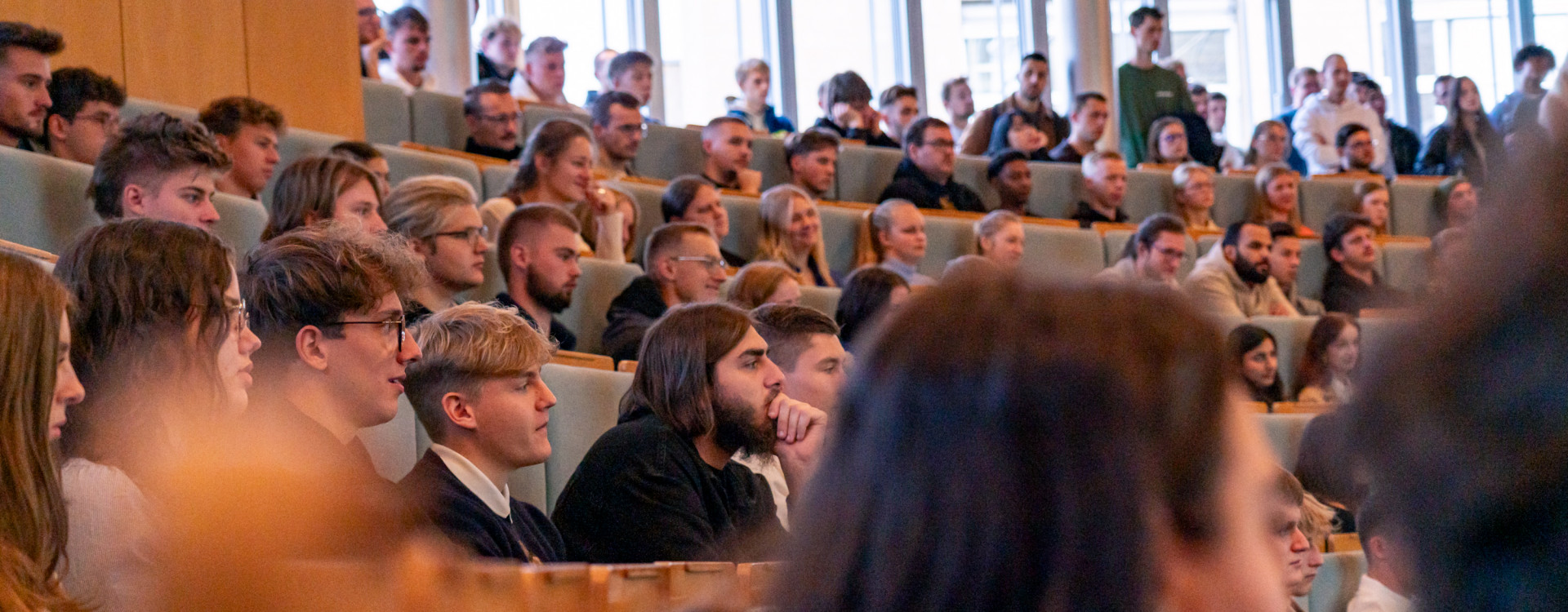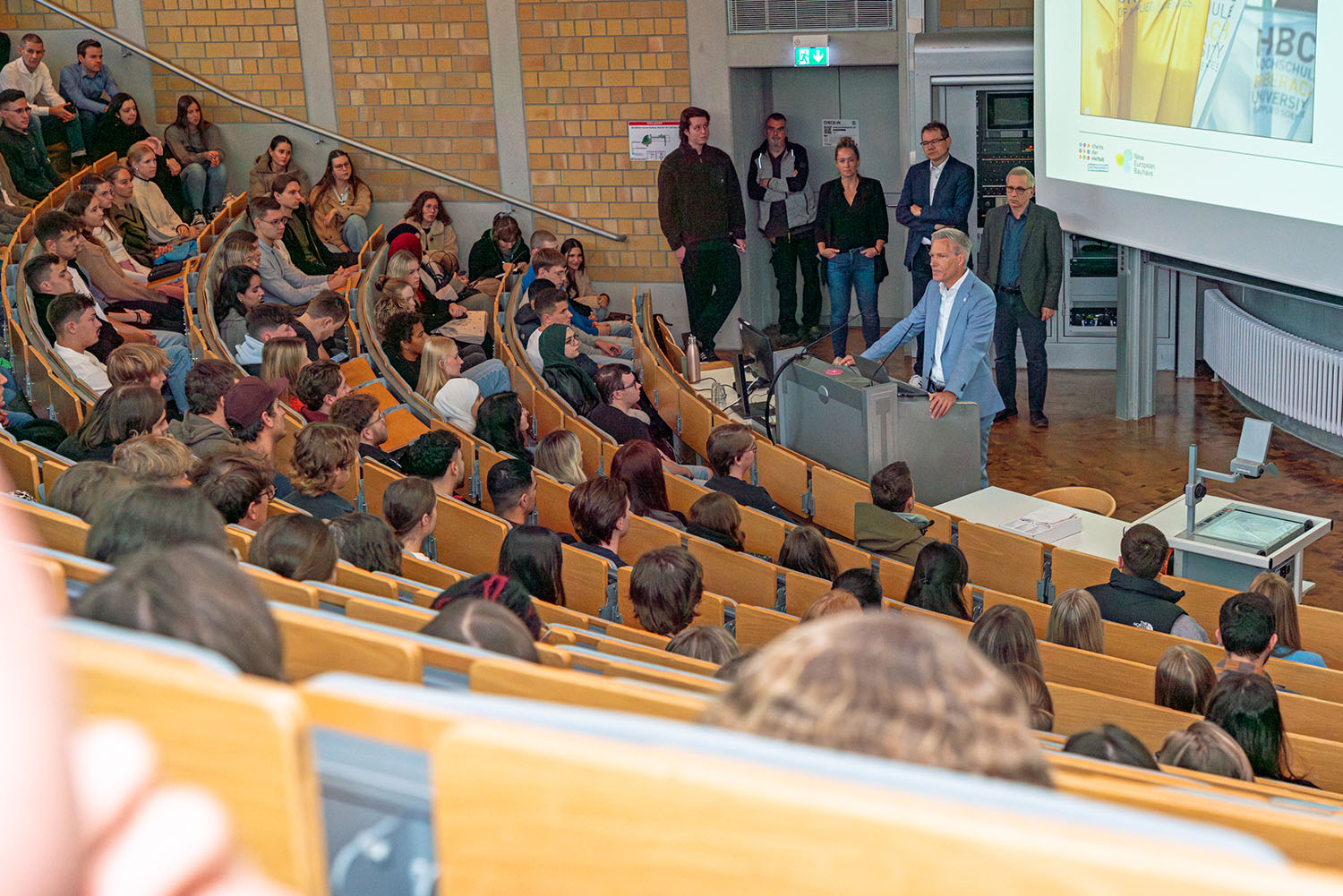 Dicht gedrängt sitzen die rund 400 Studienbeginner an ihrem ersten Tag im Audimax der Hochschule Biberach (HBC), wo Rektor Prof. Matthias Bahr gemeinsam mit den Dekanen der Fakultäten Architektur und Energie-Ingenieurwesen, Bauingenieurwesen und Projektmanagement, BWL und Biotechnologie die neuen Studierenden willkommen hieß.