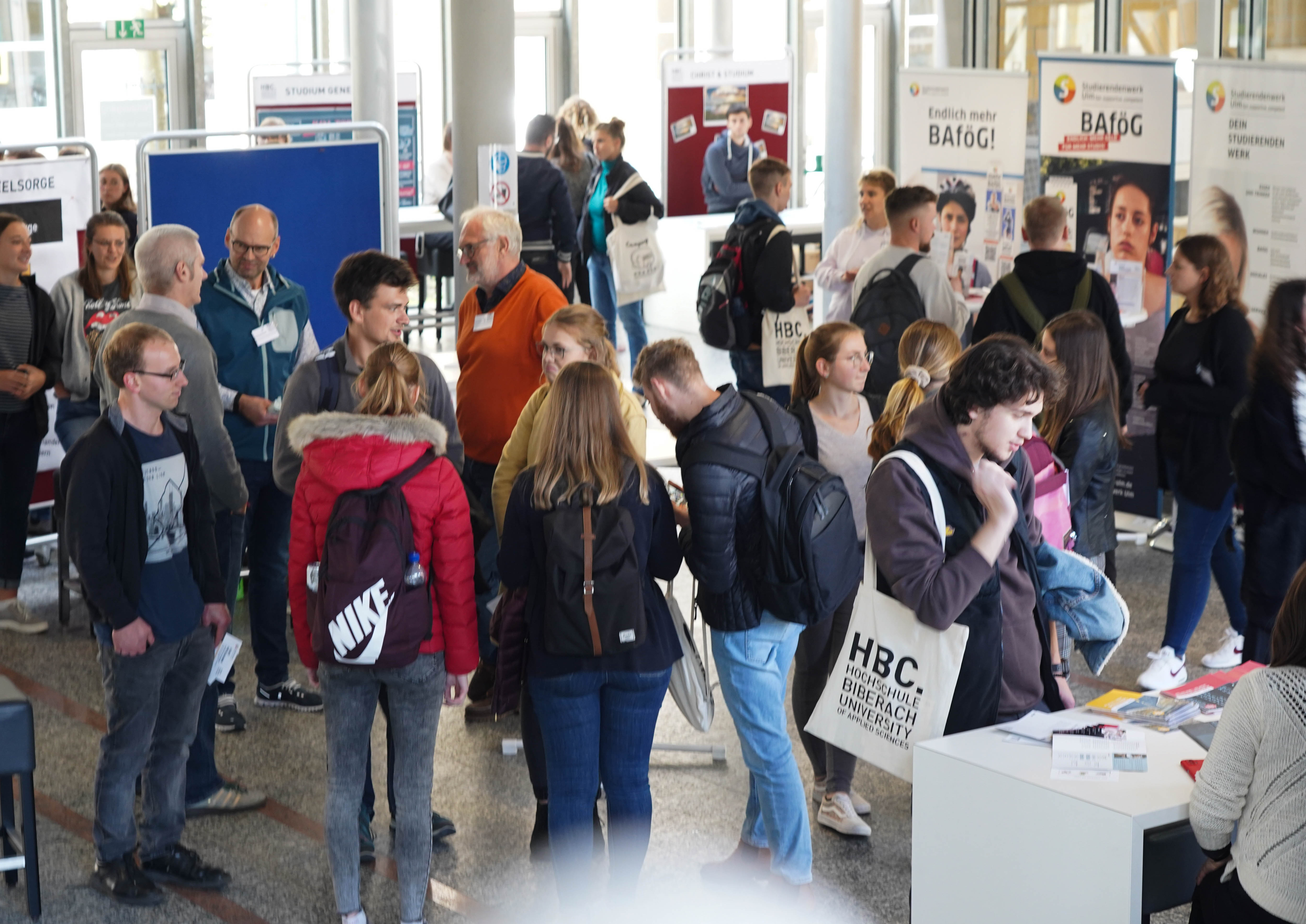 Am 14. Juni 2023 lädt die Hochschule ab 14 Uhr alle Interessierten an den Campus Stadt ein, um ihre Studiengänge, die Gebäude sowie Professor*innen und Mitarbeitende näher kennenzulernen. Ob Architektur, BWL, Bauingenieurwesen, Energie-Ingenieurwesen, Bau-Projektmanagement, Holzbau-Projektmanagement, Industrielle oder Pharmazeutische Biotechnologie – alle Studiengänge werden ausführlich präsentiert und vorgestellt. Studierende, Mitarbeitende und Lehrende stehen für sämtliche Fragen zur Verfügung. Dabei werden natürlich verschiedene Wege der Wissensvermittlung berücksichtig: Schnuppervorlesungen, Laborführungen, VR-Brillen und ein digitaler Vortrag geben Einblicke in das, was spätere Studierende einmal erwartet. Neben den konkreten Studienangeboten geht es auch um das studentische Leben. Auslandsaufenthalt, Hochschulsport, eigene Wohnung, Campusleben. Um auch diese wichtigen Aspekte des Studiums erlebbar zu machen, gibt es einen „Markt der Möglichkeiten“, an dem sich Abteilungen der Hochschule Biberach, aber auch außerhochschulische Organisationen wie das Studierendenwerk Ulm oder die Handwerkskammer Ulm an verschiedenen Ständen vorstellen.