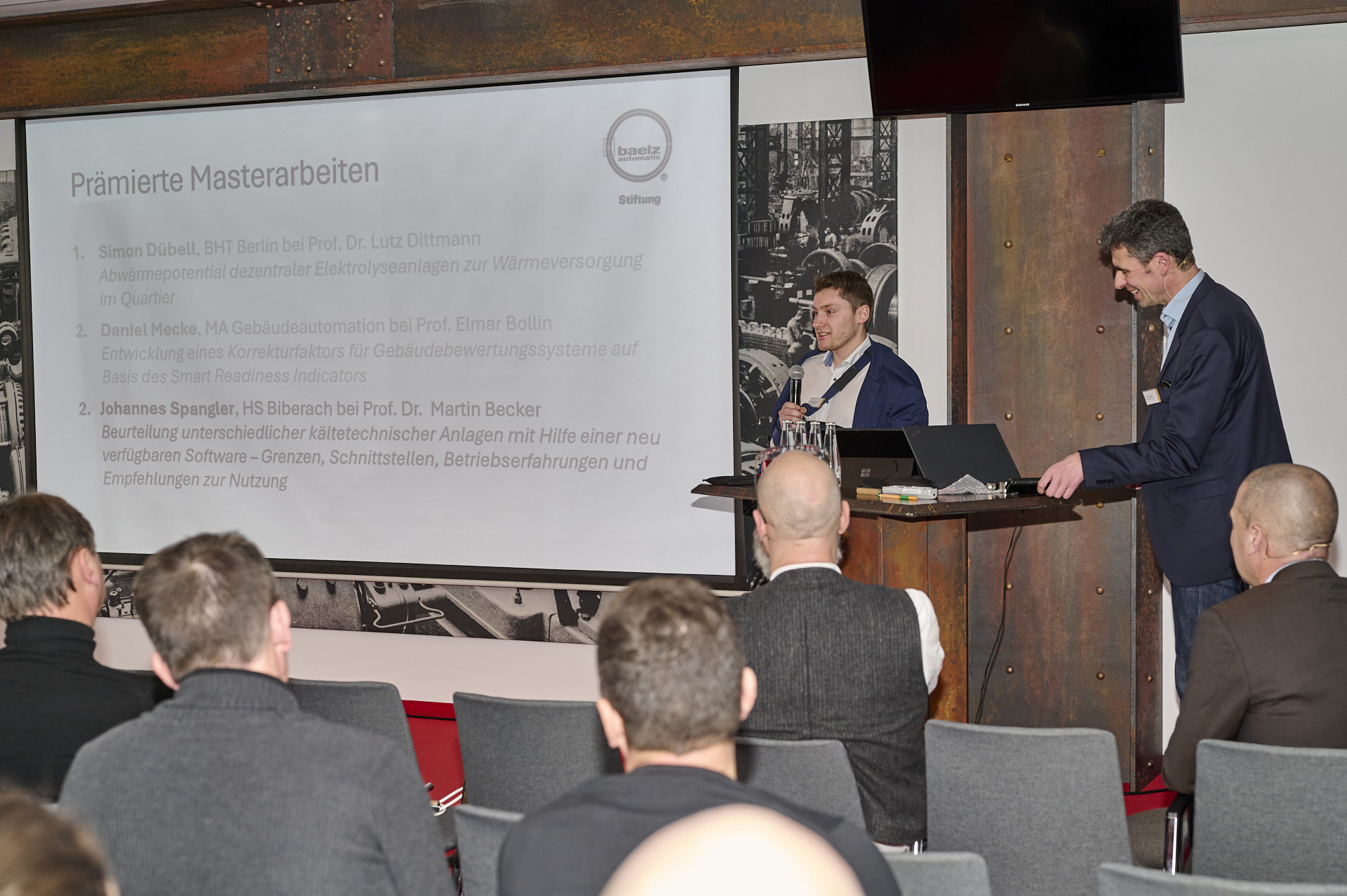 Die Baelz-Stiftung hat Ende Januar zum 22. Mal herausragende studentische Bachelor- und Masterarbeiten ausgezeichnet – u.a. wurde ein Absolvent der Hochschule Biberach (HBC) mit einem Preis bedacht. Die Arbeiten wurden von Professor*innen für den von der Baelz-Stiftung ausgelobten Wettbewerb vorgeschlagen. Inhaltlich geht es vorwiegend um regelungs-technische Fragestellungen in der Gebäudetechnik, die maßgeblich Energieeffizienz, den Einsatz regenerativer Energien wie auch die Planung von gebäudetechnischen Anlagen umfassen. Die Stiftung ist an der Berliner Hochschule für Technik angesiedelt; die feierliche Übergabe der Preise erfolgte im Rahmen eines Anwenderseminars der Fa. Baelz im Stadion des Bundesligisten 1. FC Union Berlin. Die Absolvent*innen konnten dabei ihre Arbeiten einem breiten Fachpublikum vorstellen.