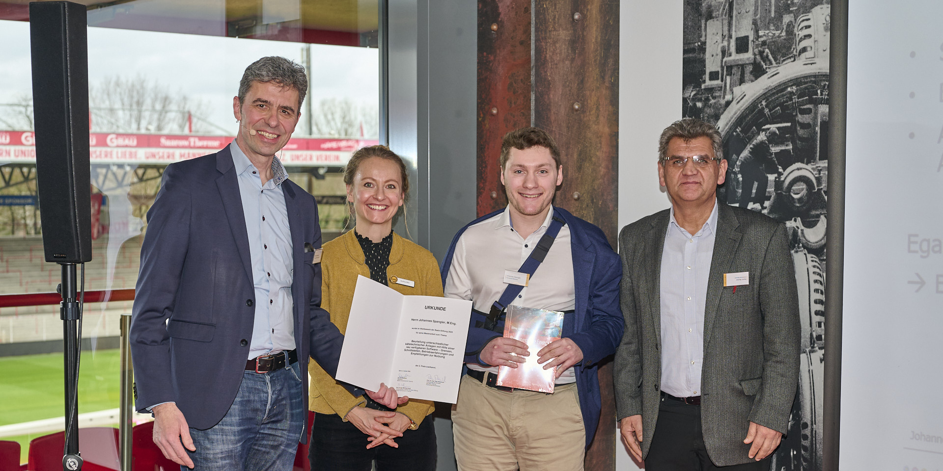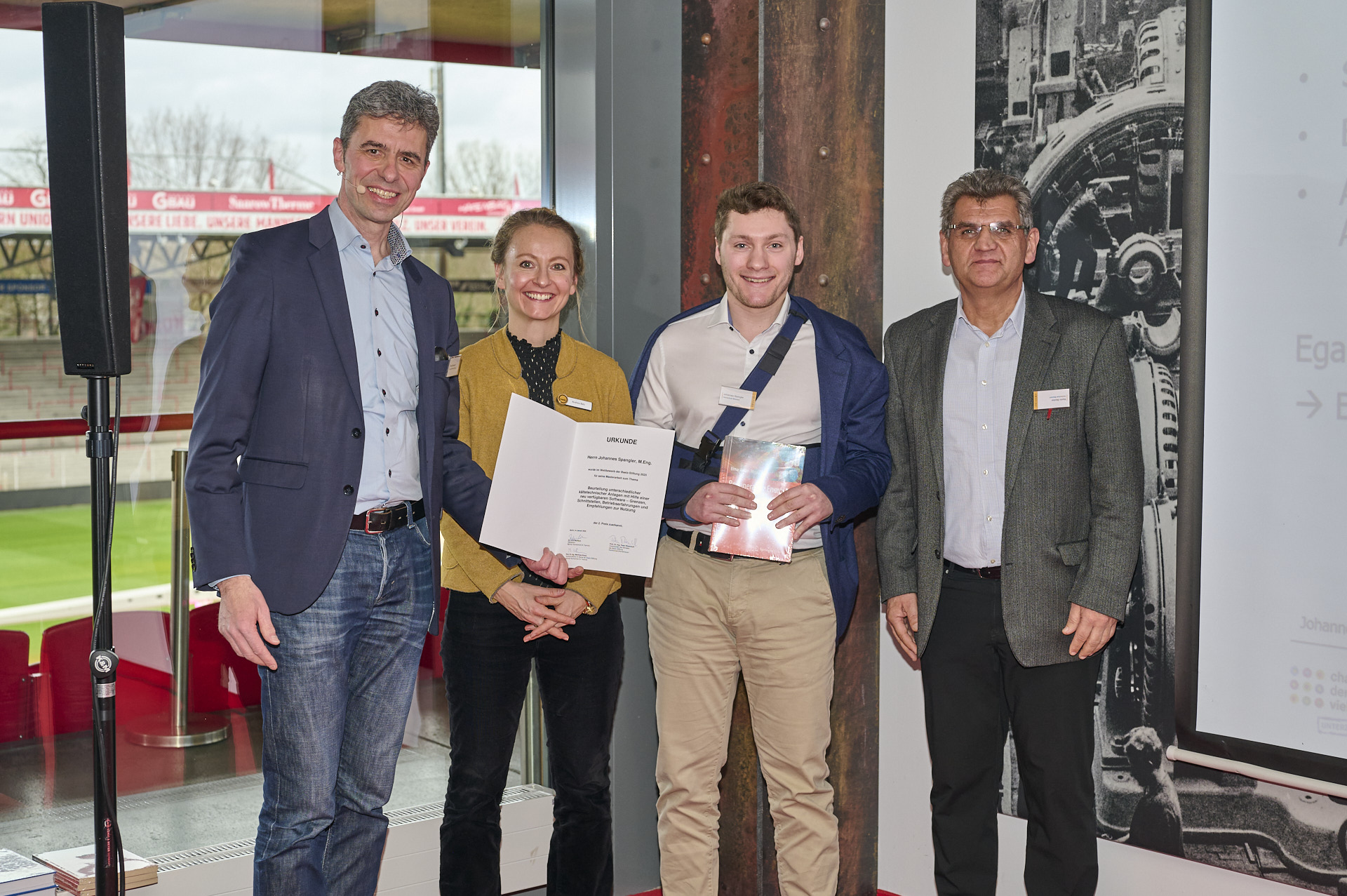 Die feierliche Übergabe der Preise erfolgte im Rahmen eines Anwenderseminars der Fa. Baelz im Stadion des Bundesligisten 1. FC Union Berlin. Die Absolventen konnten dabei ihre Arbeiten einem breiten Fachpublikum vorstellen, was natürlich auch eine große Herausforderung ist, sowie selbst den Vorträgen zu Strahlpumpen und Absorptionskälteanlagen der Fa. Baelz folgen. Eine abschließende exklusive Stadionführung rundete das Programm ab.