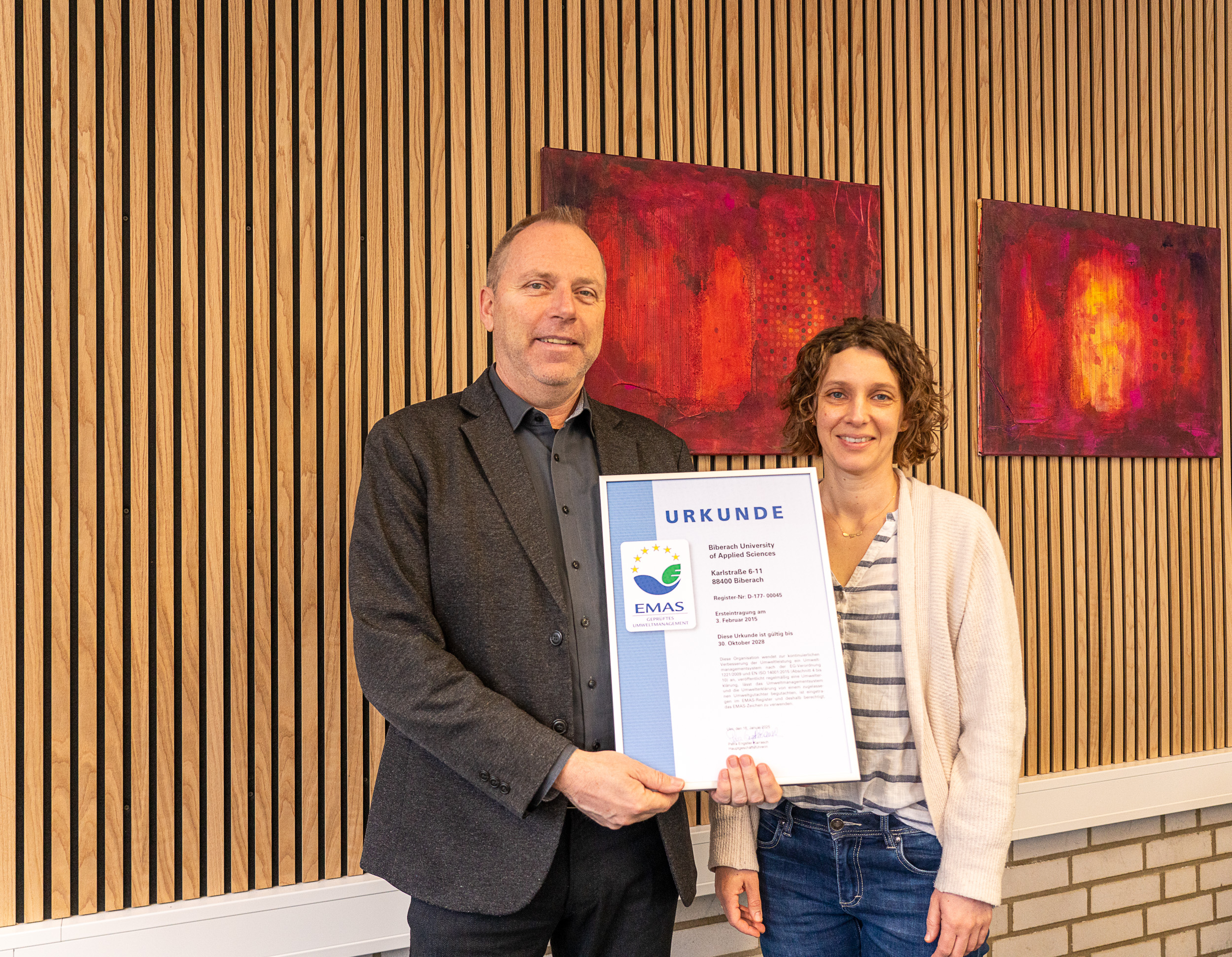 Die Hochschule Biberach wurde erneut erfolgreich nach dem Umweltmanagementsystem EMAS zertifiziert und setzt damit ihr nachhaltiges Engagement fort. Seit 2014 ist EMAS ein fester Bestandteil der Hochschulstruktur und trägt zur kontinuierlichen Reduzierung von Energieverbrauch und CO₂-Emissionen bei.