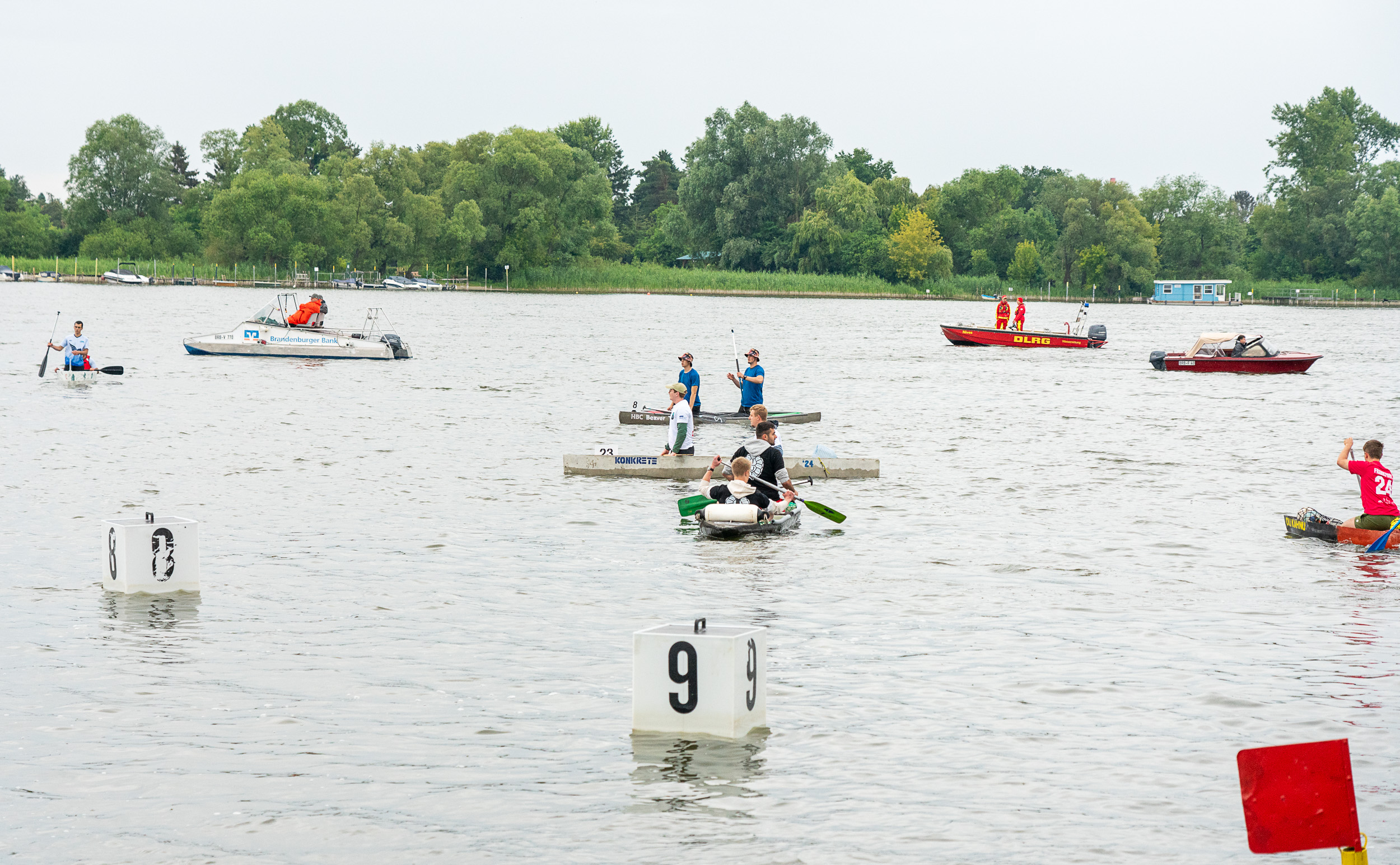 Nach einer kurzen und regnerischen Nacht herrschte am Samstagmorgen auf dem Regattagelände reges Treiben: Studierende rannten aufgeregt umher, Kanus wurden getragen, gezogen und gerollt. Die Stimmung war ausgelassen, auffallend freundschaftlich und fair – von angespannter Wettkampfatmosphäre keine Spur. Denn alle verfolgten das gleiche Ziel: Spaß haben und, wenn möglich, heil und im Kanu sitzend die Ziellinie im Brandenburger Beetzsee erreichen. Leider gelang dies nicht allen Teilnehmenden, einige Kanus konnten gar nicht erst an den Start gehen, andere liefen auf der Hälfte der Strecke voll Wasser.
