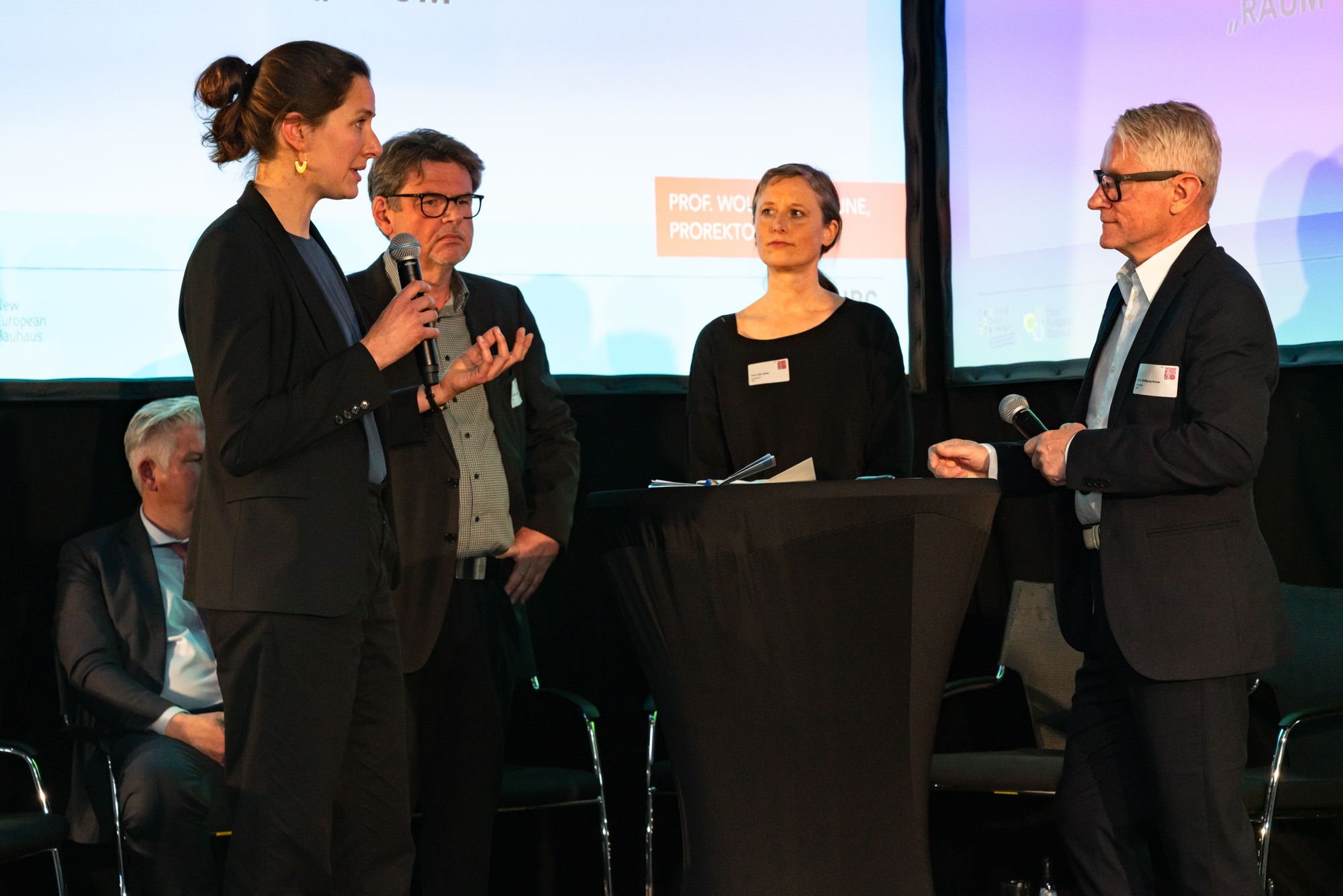 Die Talkrunden, in denen die Prorektor*innen Heike Frühwirth, Wolfgang Brune und Maik Hornuff anschließenden mit Gästen aus der Hochschule und der Akademie auf die Themen Material, Raum und Future Skills eingingen, zeigten eben dies auf: Welche Ideen und Entwicklungen gibt es am Standort Biberach?