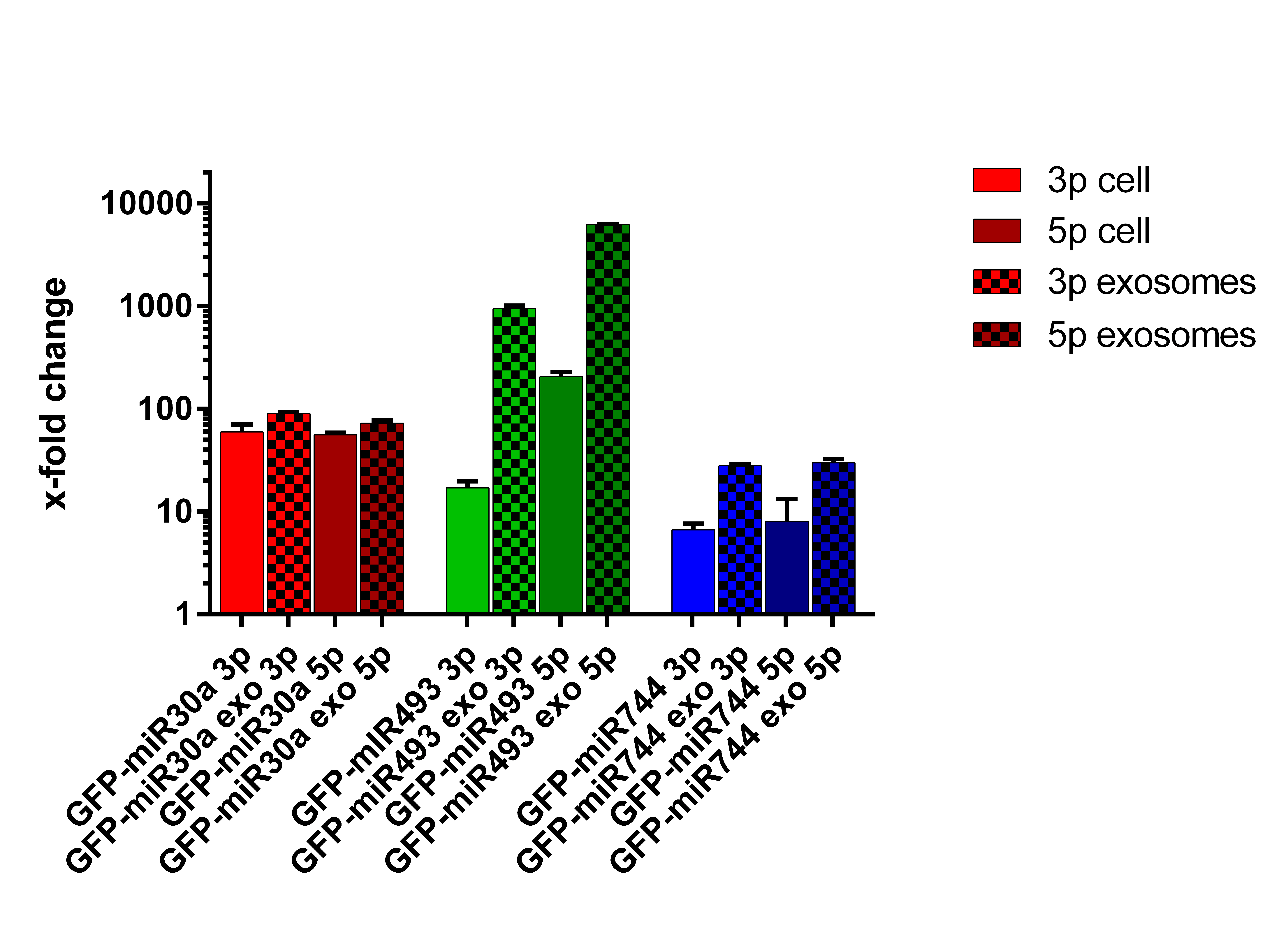 Exosomes: electron microscopy of exosome (100nm diameter) and analysis of miRNA loading by qPCR (after: Zeh et al, 2019, PLOS ONE)
