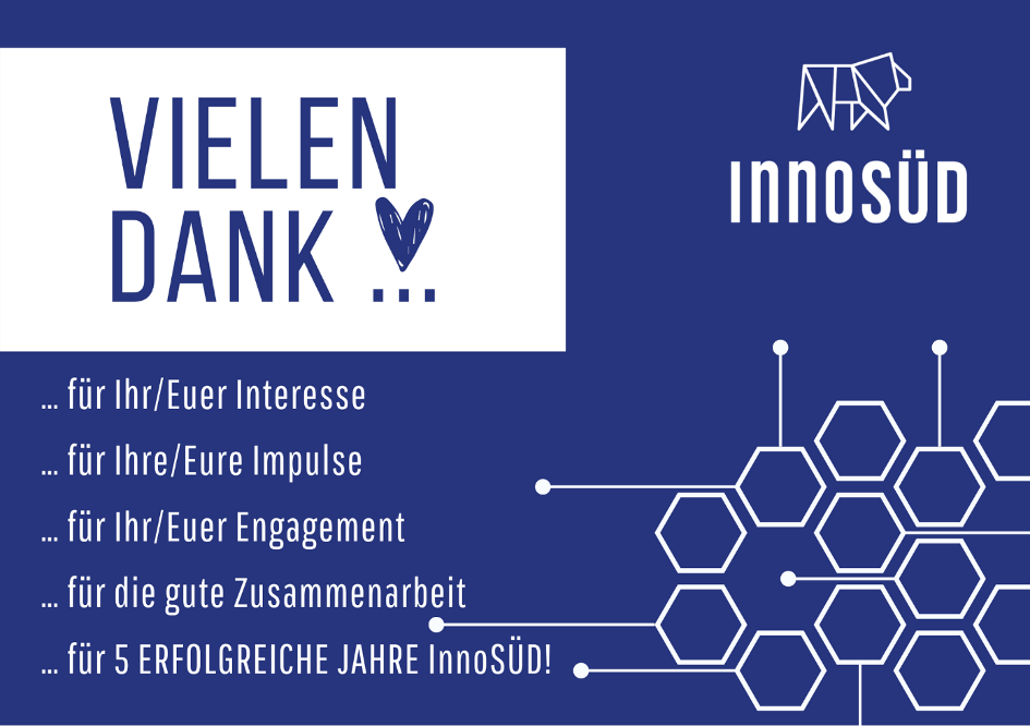 Im Rahmen des Bund-Länderprogramms „Innovative Hochschule“ des Bundesministeriums für Bildung und Forschung, wurde das Projekt InnoSÜD über einen fünfjährigen Zeitraum (2017-2022) gefördert. Dadurch wurden für die Region wichtige, innovative Transferformate in den Bereichen Energie, Mobilität, Gesundheit & Biotechnologie, sowie dem Transformationsmanagement umgesetzt: mit einem nachhaltig wirksamen Austausch zwischen Wissenschaft, Wirtschaft, Politik und Gesellschaft. Neben neuen Kooperationen, die dadurch ins Leben gerufen wurden, konnten außerdem gemeinsame Forschungsinitiativen weiterentwickelt, die Zusammenarbeit zwischen Unternehmen und Hochschulen gestärkt und einige Formate, mit dem Fokus auf den Wissenstransfer in die Gesellschaft, umgesetzt werden.