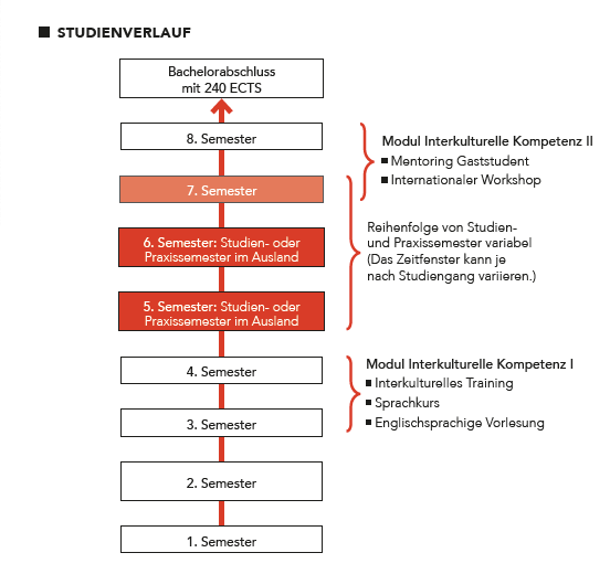 You’ll improve your foreign language skills, develop intercultural competencies, and build a global network. And best of all: you’ll receive an additional certificate with your bachelor's degree that proves your intercultural skills – a real advantage for your future career in an international environment!