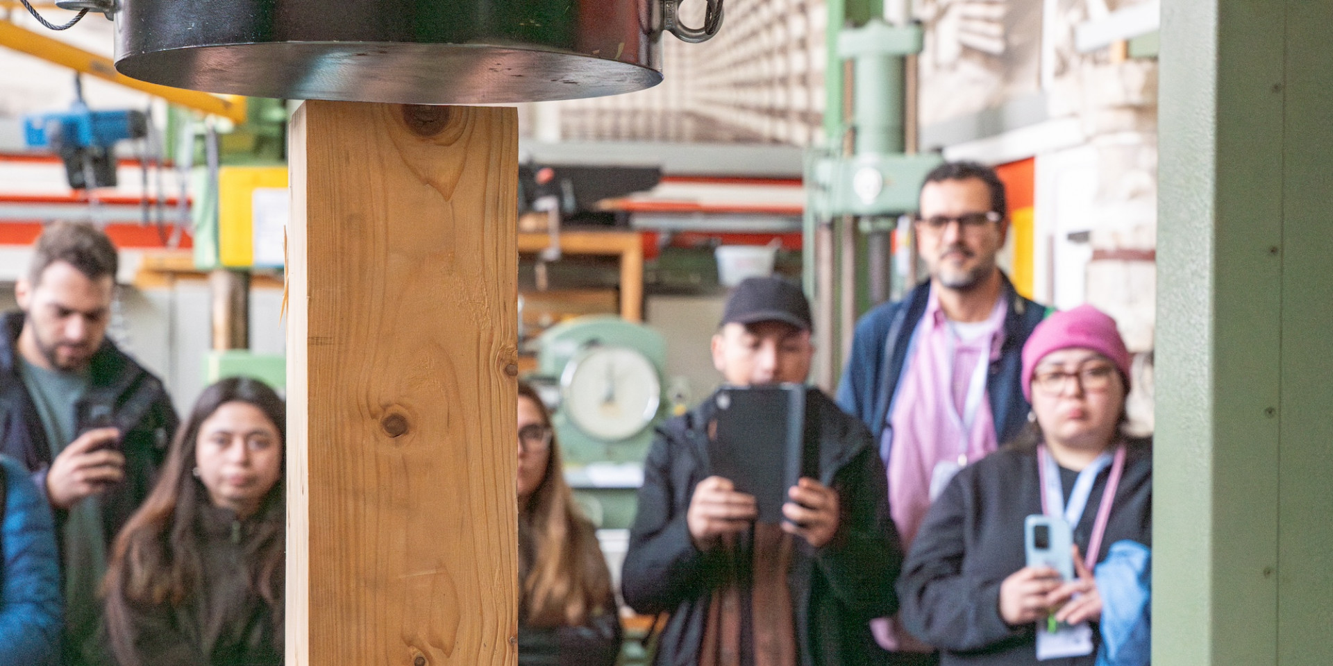 Teilnehmen dürfen Studierende der Studiengänge Architektur, Bauingenieurwesen, Holzbau-Ingenieurwesen, Energie-Ingenieurwesen, Energie-und Gebäudesysteme sowie Bau-Projektmanagement. Ein Highlight der Veranstaltung war die Kombination aus theoretischen Vorlesungen, praktischen Workshops und Exkursionen, bei denen die Studierenden von Industriepartnern und beispielhaften Projekten Einblicke in die vielfältige Welt des Holzbaus erhielten. Nedya Kalisch, die im fünften Semester Architektur an der HBC studiert, fasste ihre Eindrücke zusammen: „Besonders gefallen hat mir, dass wir sowohl Vorträge als auch Exkursionen gemacht haben. So blieb alles spannend und abwechslungsreich.“ Eine andere Studentin hob den Austausch mit den internationalen Kommiliton*innen hervor: „Der Kontakt mit Studierenden aus Chile und Spanien hat mir völlig neue Perspektiven auf die Bauweise von Holzkonstruktionen eröffnet“, so Michelle Lamparter, ebenfalls Architektin im fünften Semester.