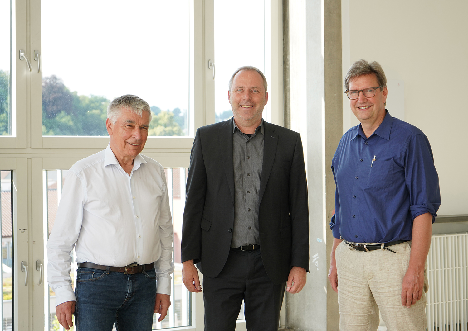 Bildinformation: Freuen sich über das Wahlergebnis: Dr. Gerd Leipold (Vorsitzender des Hochschulrates), Kanzler Thomas Schwäble und Rektor Prof. Dr. André Bleicher (v.l.n.r., Foto: HBC)