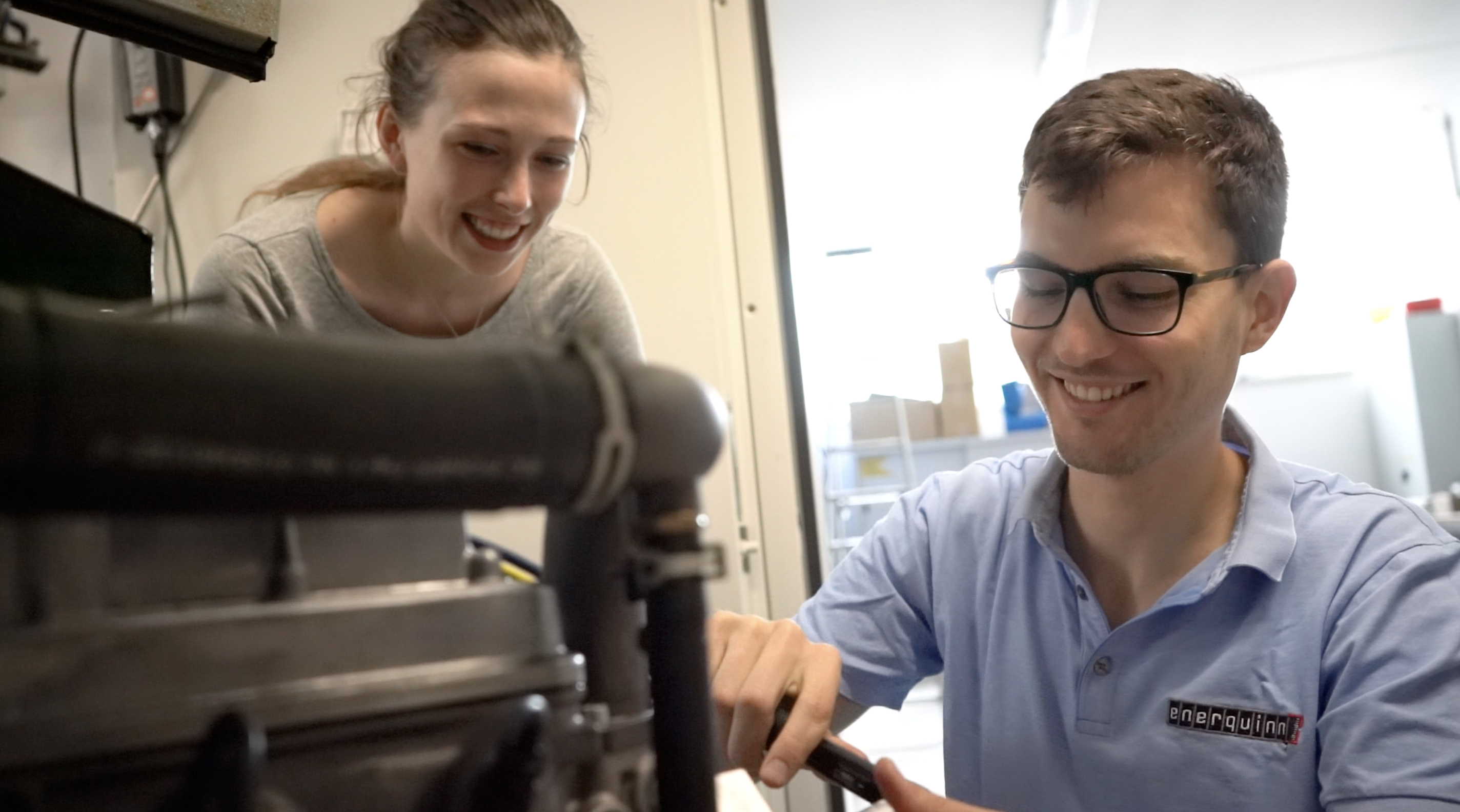Ramona Holland und Yannik Catalinac sind beide direkt nach dem Studium in das Forschungsprojekt eingestiegen. Für junge Studierende sehen sie in der Energiebranche großes Potenzial. "Es gibt viele Aufgaben in einem breiten Spektrum", so Holland. Auch Geschäftsführer der enerquinn GmbH, Stefan Oexle-Ewert, ist überzeugt, dass es im Bereich der Energiewende ein großes Betätigungsfeld gibt. "Es geht nicht nur darum, neue Technologie aufzubauen, sondern es ist ein Zusammenspiel von sehr vielen Technologien."