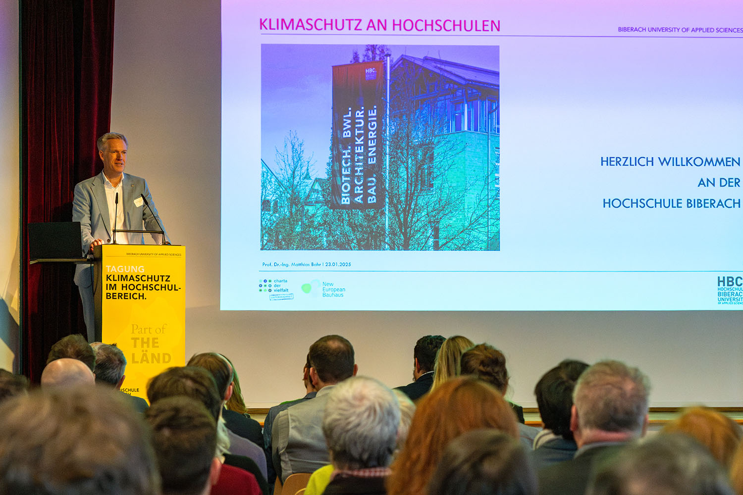 Hochschulen und Universitäten haben sich am 23.01.2025 an der Hochschule Biberach (HBC) getroffen, um über den Klimaschutz als eine der großen gesellschaftlichen Herausforderungen unserer Zeit zu diskutieren.