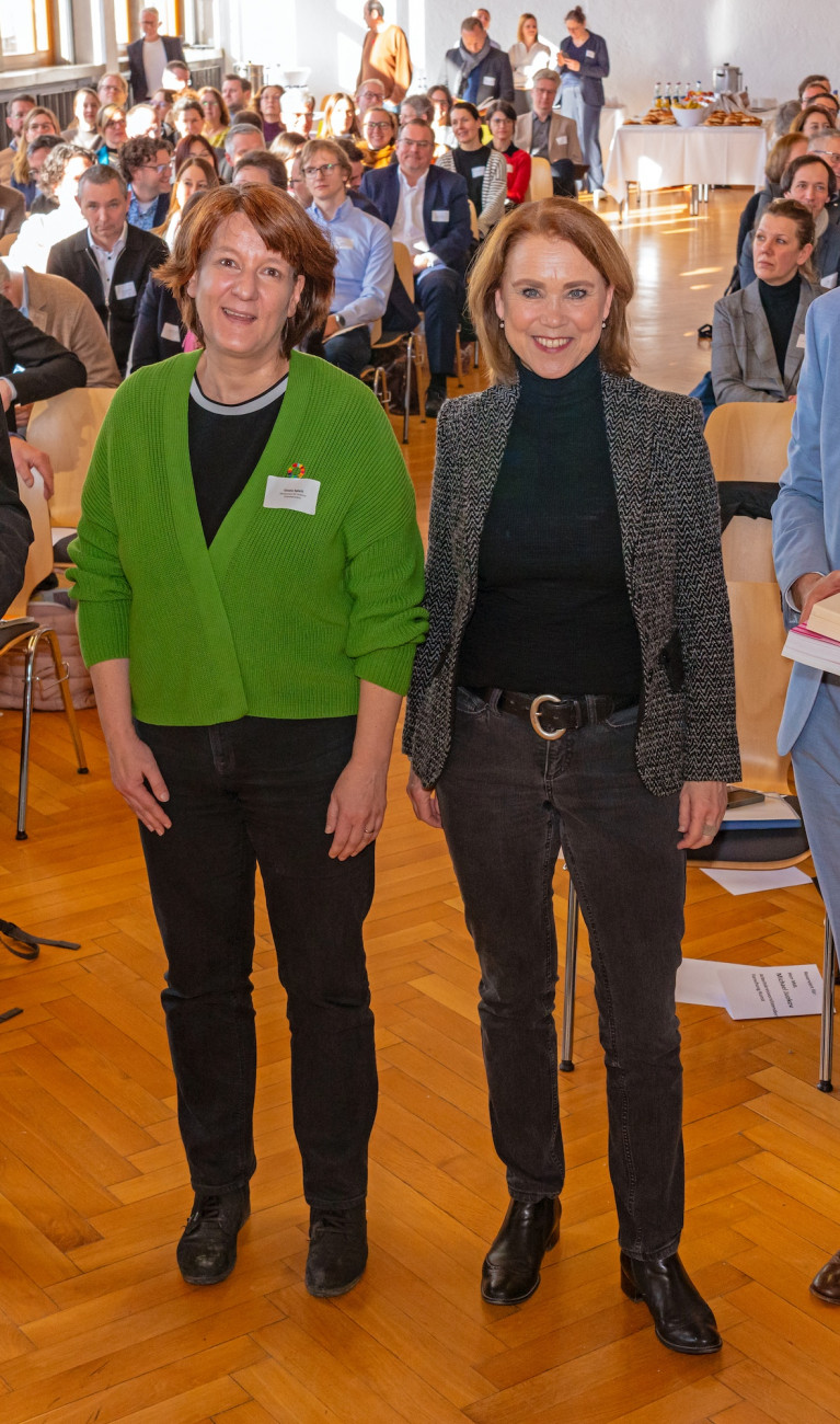 Am Rande der Veranstaltung zeigte Jasmin Steinhauser, Leiterin der Abteilung Campusentwicklung, auf, welche Maßnahmen die Hochschule Biberach im Bereich klimaneutraler Campus bereits erfolgreich in den Bereichen Gebäude und Energie, Abfall, Nachhaltige Beschaffung, Mobilität sowie Freiflächen und Biodiversität umgesetzt hat. Das Team nimmt sich u.a. allen Aufgaben an, die das Klimaschutzmanagement des Landes vorsieht.