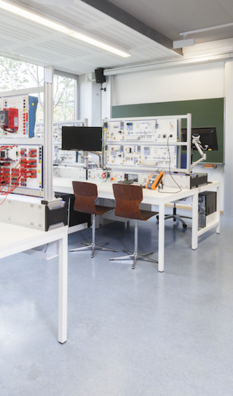 Themen im Laborunterricht sind die elektrische Gebäudeausrüstung, Anlagenplanung, Projektierung von Elektroanlagen, elektrische Systeme und die Netzintegration erneuerbarer Energien. Laborpraktika und auch vorlesungsbegleitende Versuche werden im Labor für Elektrische Systeme abgehalten.