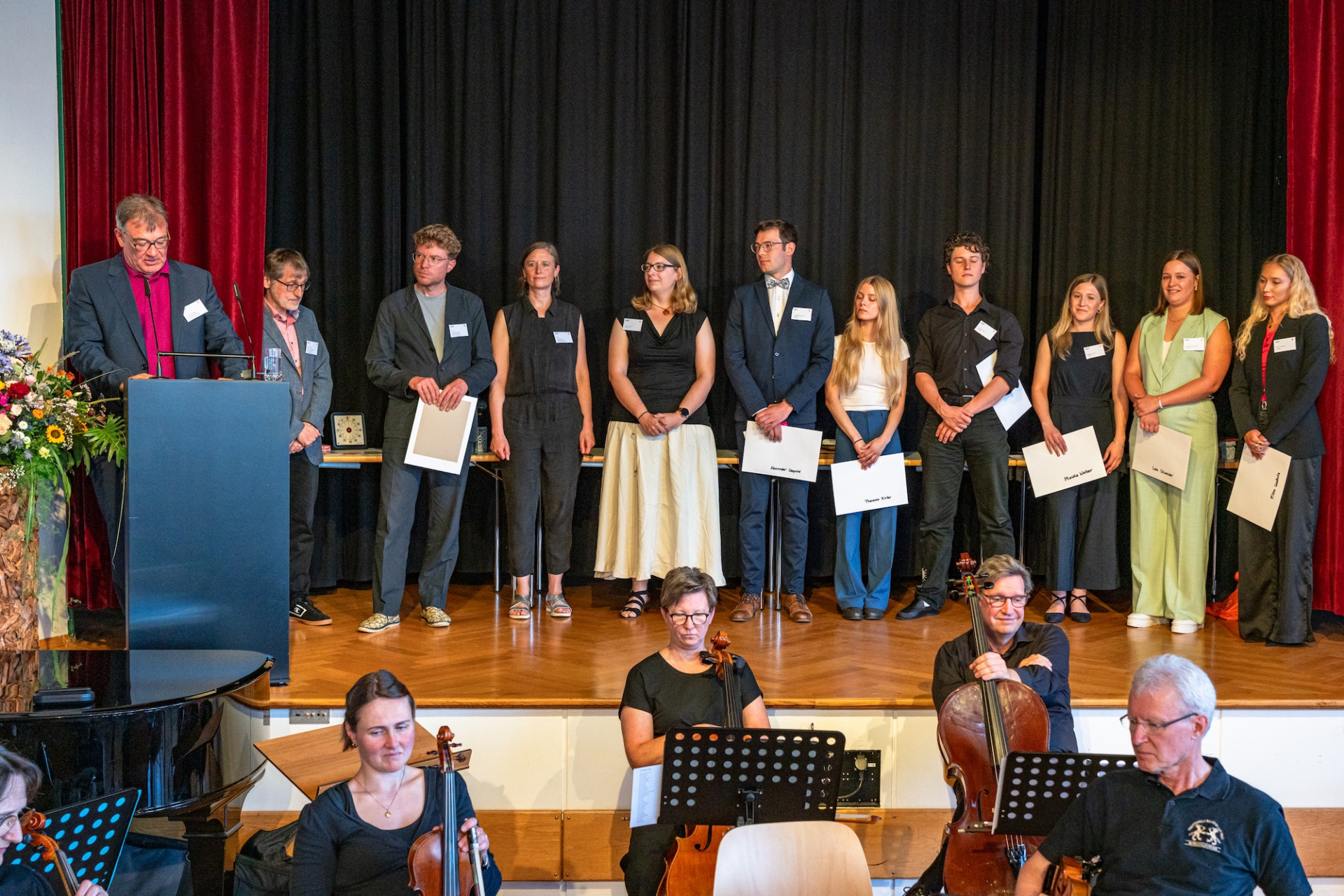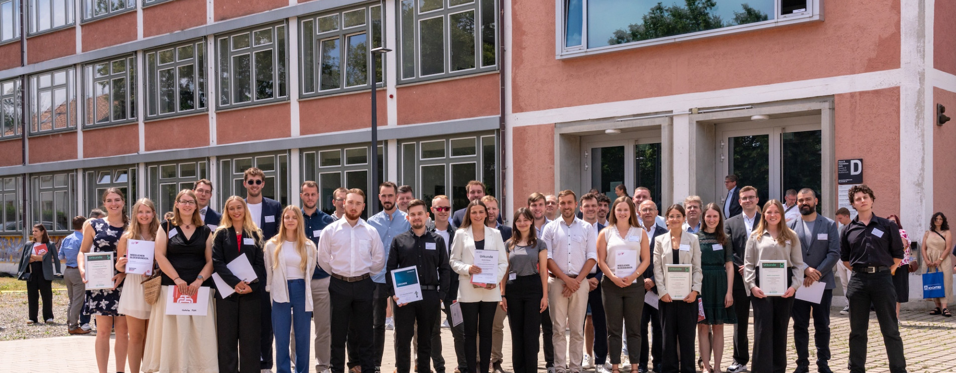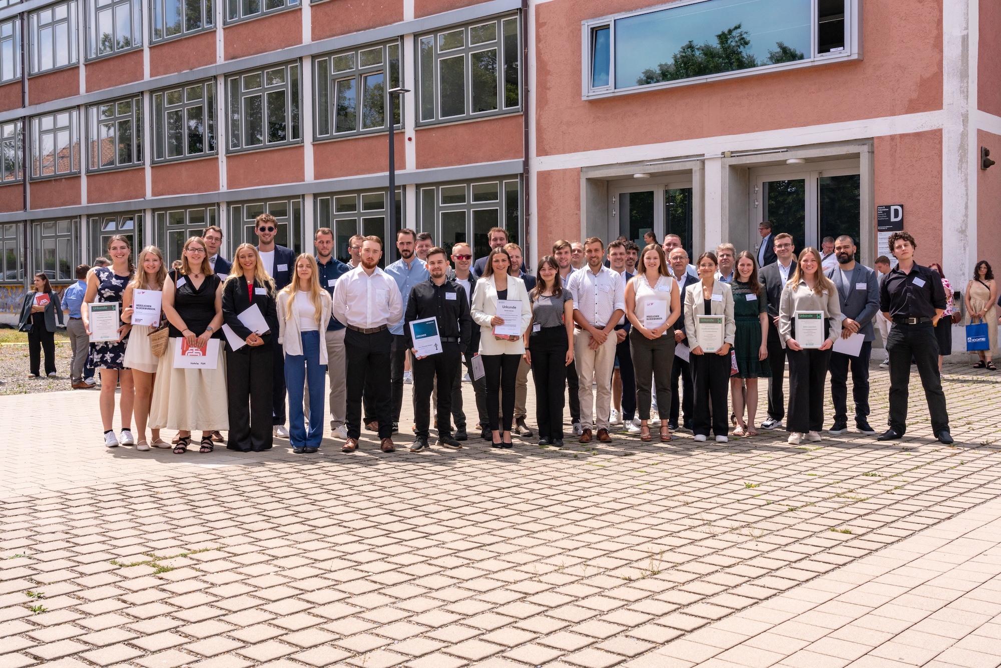 Die Master-Absolvent*innen aller Studiengänge standen im Mittelpunkt des Academic Day an der Hochschule Biberach (HBC) am vergangenen Freitag. Im Rahmen der Preisverleihung wurden zunächst die besten Master-Thesen ausgezeichnet. Über 40 ehemalige Studierende der Fakultäten Architektur und Energie-Ingenieurwesen, Bauingenieurwesen und Projektmanagement, BWL und Biotechnologie wurden für ihre herausragenden Leistungen mit Geld- und Buchpreisen gewürdigt. Gestiftet werden die Preise von Unternehmen, Stiftungen, Verbänden sowie dem Förderverein GdF (Gesellschaft der Freunde und Absolventen der Hochschule Biberach), der in diesem Jahr sein 60. Bestehen feiert und der HBC seither unterstützend zur Seite steht.