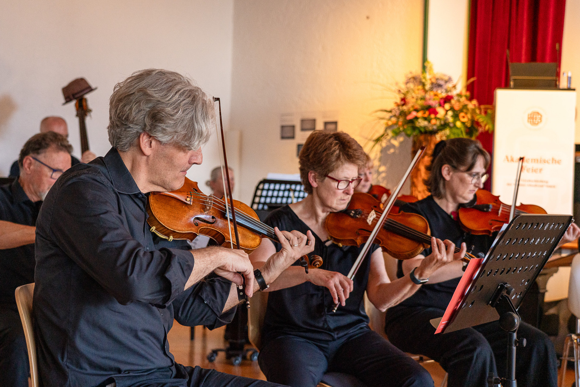 Zuvor hatte die Hochschule die Masterabsolvent*innen aller Fakultäten und Studiengänge in einer zweiten Akademischen Feier verabschiedet, die wie das Event am Vormittag durch das Hochschulorchester unter der Leitung von Prof. Dr. Klaus K. Weigele musikalisch umrahmt wurde. Den Impuls für die diesjährige Abschlussfeier übernahm Christiane Bardroff, Chief Operating Officer der Rentschler Biopharma SE und Vorsitzende des Hochschulrates der HBC. „Master your Impact“ lautete der Titel ihres Vortrages, in dem sie wertvolle Einblicke in ihr (Berufs-)Leben gab und aufzeigte, wie es gelingt, sich wirksam in die Gesellschaft einzubringen: Natürlich mit Fleiß und Engagement, aber auch wahrhaftigem Interesse an den Menschen, die einen umgeben.