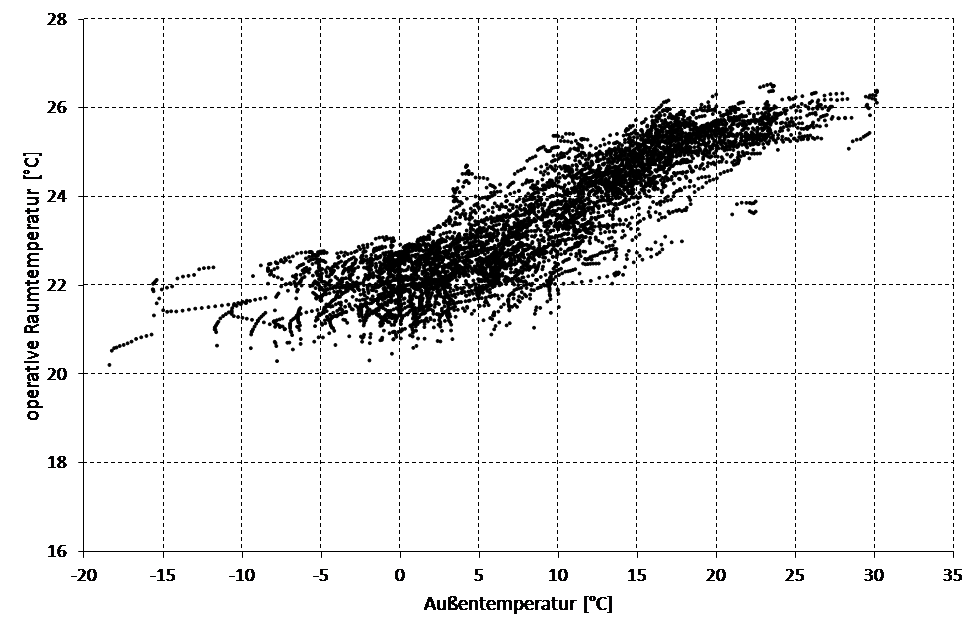 Abb. 2: Auswertung der operativen Raumtemperaturen einer Jahressimulation des