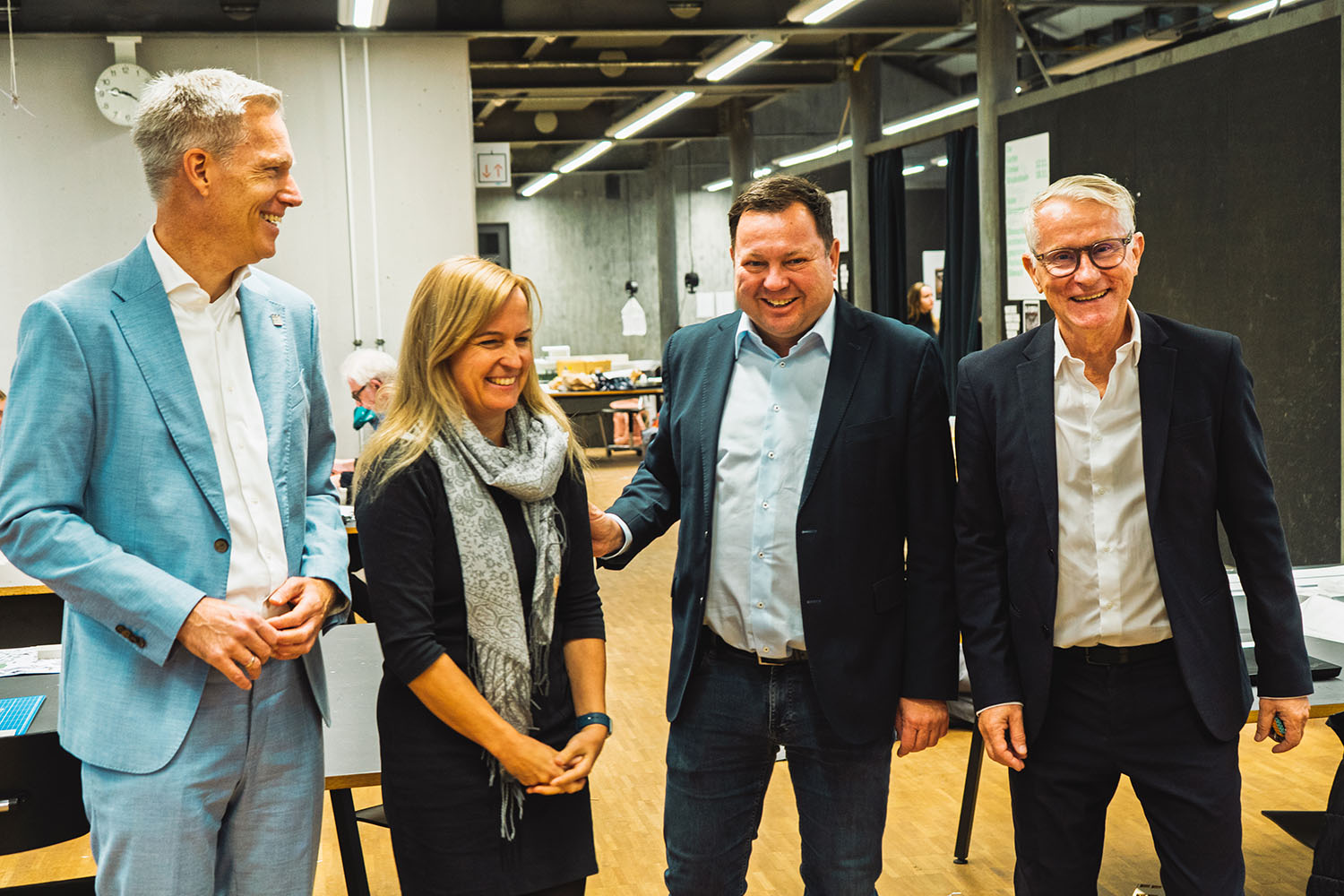 Der intensive Dialog mit politischen Entscheidungsträgern ist für die Hochschule ein wichtiger Baustein, um nachhaltige Innovationen im Bauwesen voranzutreiben und die Entwicklung der Region aktiv mitzugestalten. Wichtig war der Hochschulleitung deshalb auch, Martin Gerster mit auf einen Rundgang durch die Hochschule zu nehmen; Ziele waren u.a. der Zeichensaal und das Technische Zentrum, das zum Wintersemester erste Bereiche in Betrieb genommen hat.