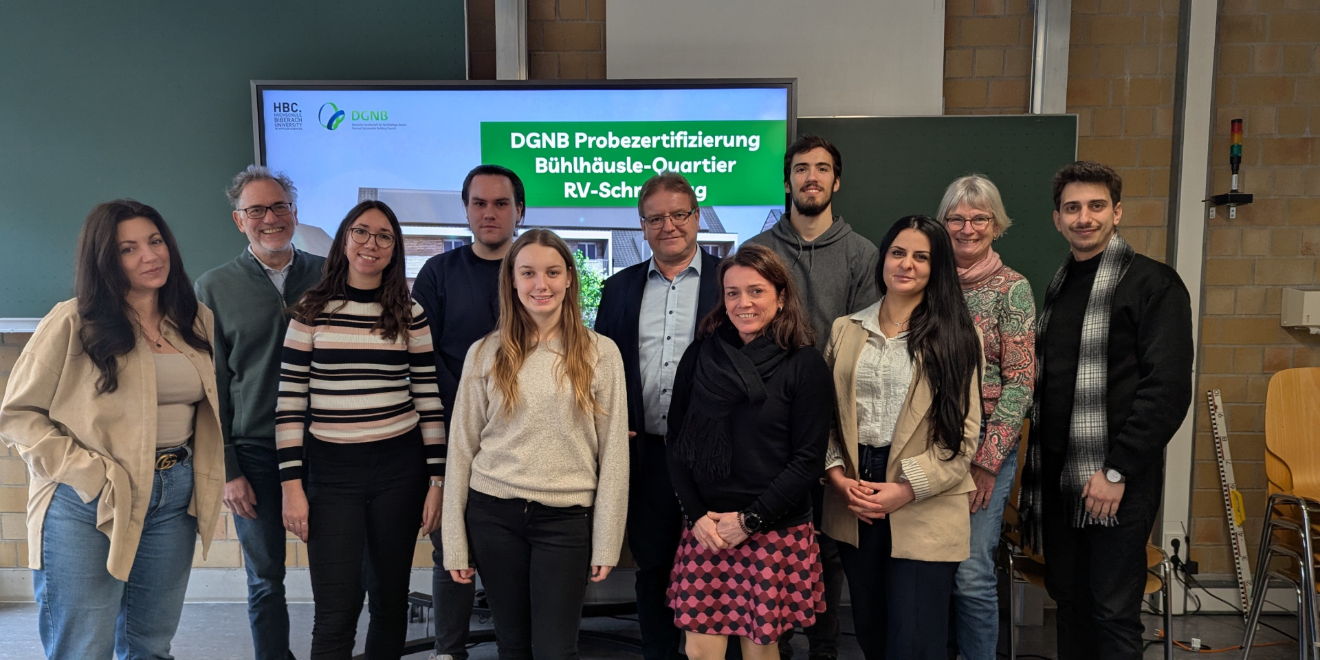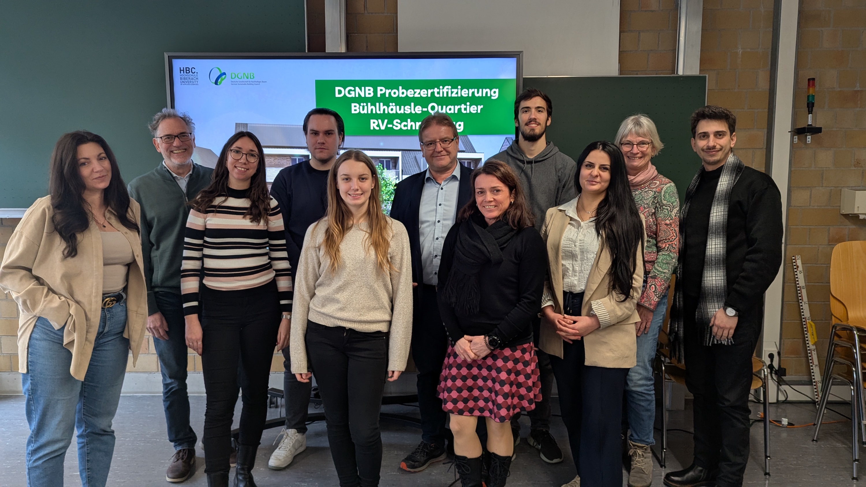Für Roland Ehry aus dem Vorstand des Vereins war es spannend zu verfolgen, „wie die Studierenden ihre Einschätzungen begründeten und die Diskussion über die Wechselwirkungen der Kriterien auf die Gesamtbewertung führten“. So konnte ein gutes Verständnis aus Sicht der Auditoren und Bauherren entstehen, so Ehry. Auch Dozent Matthias Gulde zeigte sich zufrieden mit den Ergebnissen, die seine Studierenden zum Ende des Wintersemesters präsentierten. Er ist bereits auf der Suche nach einem neuen Projekt, das sich für eine solche DGNB-Probezertifizierung eignet, denn im kommenden Semester wird er das Seminar erneut anbieten.