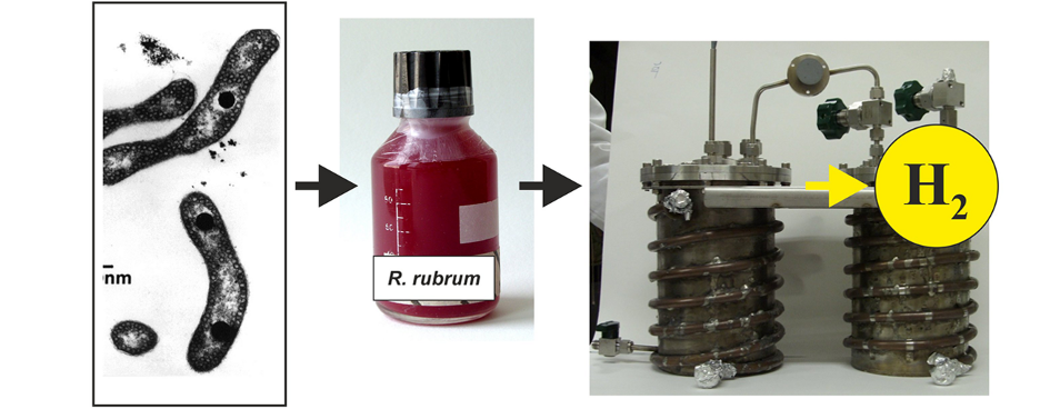 The project should demonstrate the potential of the purple bacterium Rhodospirillum rubrum for large-scale hydrogen production using fruit- and milk-wastes as substrates. This novel process ("dark photosynthesis") does not require light, is cheap to run, and readily up-scalable. Parallel to hydrogen production, the "dark photosynthetic" metabolic regime can be utilized for the simultaneous production of high-value industrial products, e.g. terpenoids. The "dark photosynthesis" process still allows the possible use of a low energy illumination for further enhancement of hydrogen production efficiency. It is intended that the project should be an important contributor to a future hydrogen economy and also circular bioeconomy in Germany. The future market potential of the "dark photosynthetic" process will be analyzed by a systematic study of the integration of the process into various energy sector scenarios.