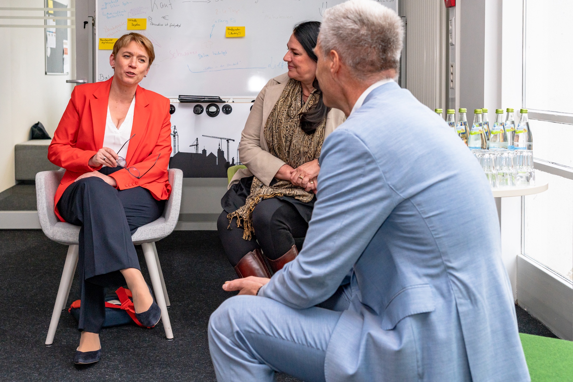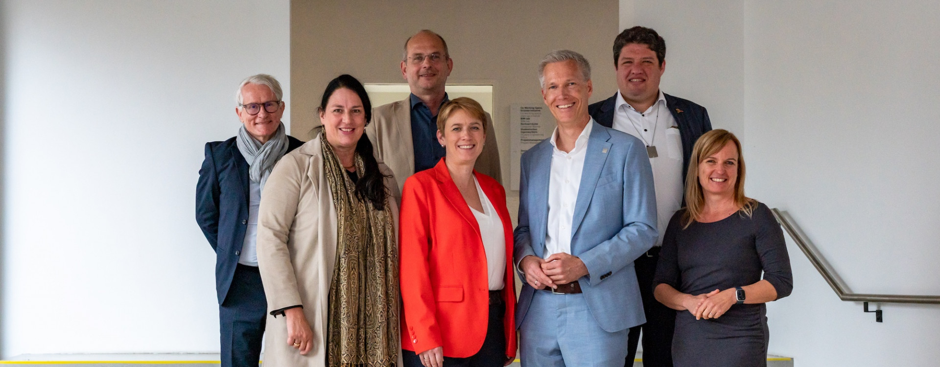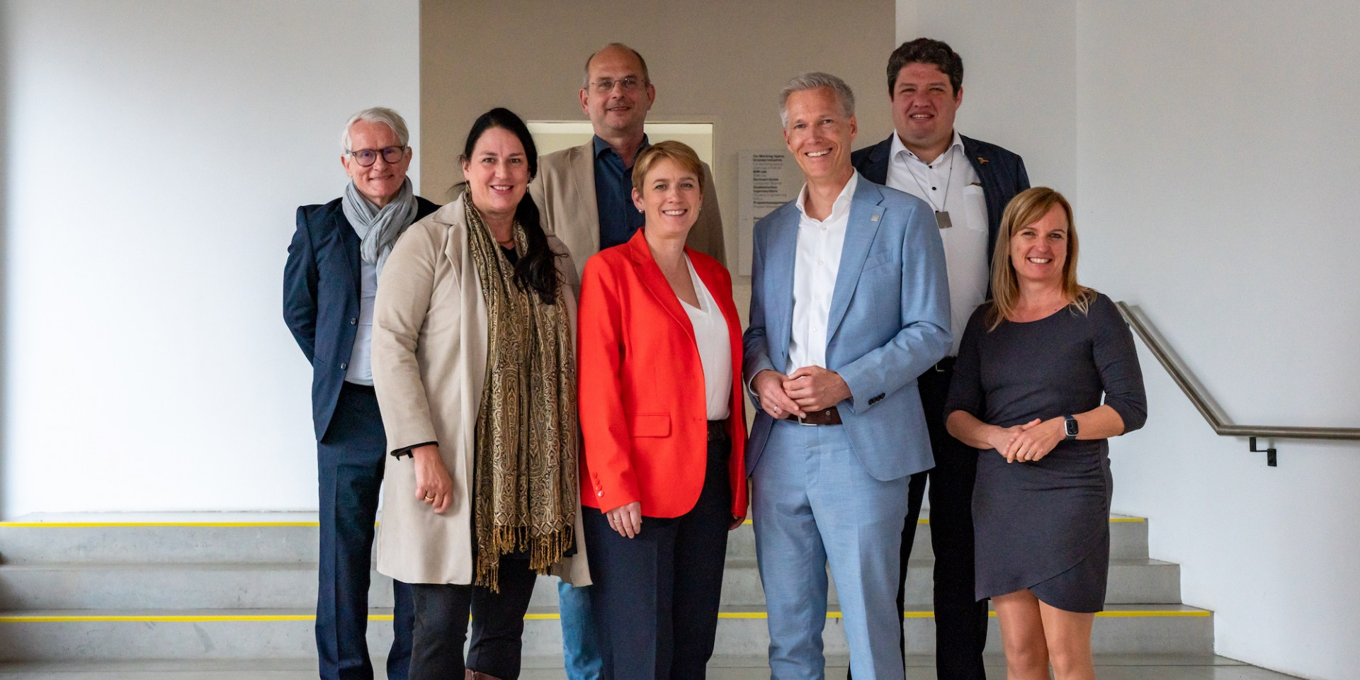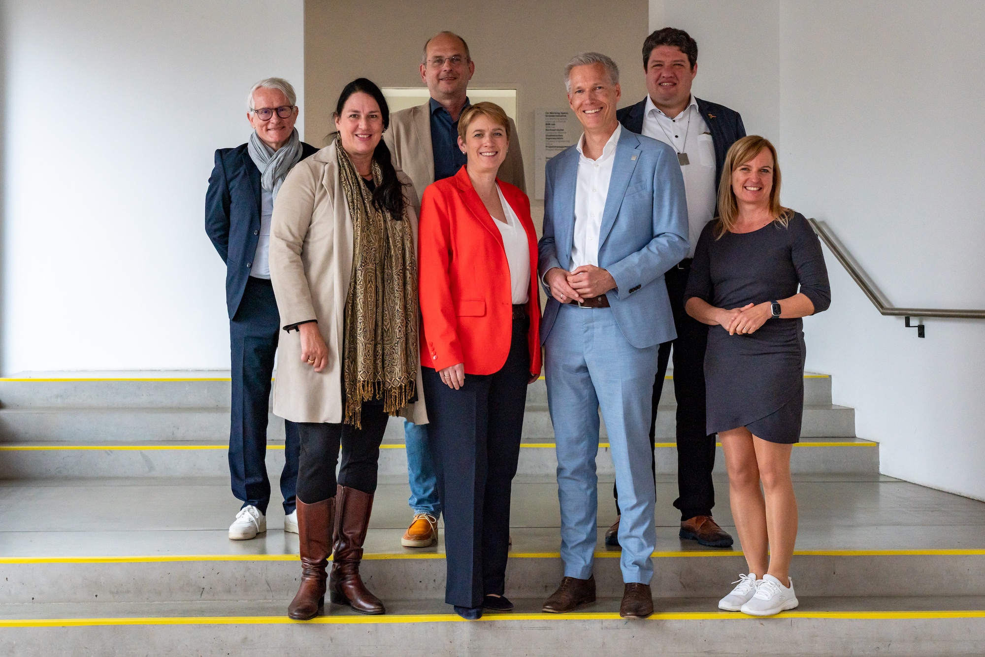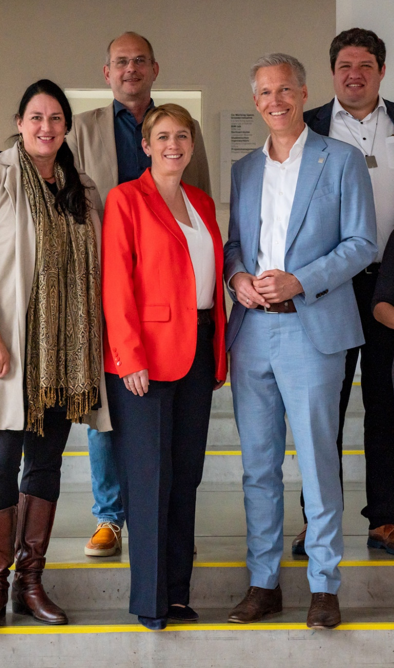 Bundestagsabgeordnete Dr. Anja Reinalter (Bündnis 90/Die Grünen) und Staatsekretärin Andrea Lindlohr MdL aus dem Ministerium für Landesentwicklung und Wohnen Baden-Württemberg haben am Donnerstag (24. April 25) die Hochschule Biberach (HBC) besucht. Dabei präsentierten Rektor Prof. Dr. Matthias Bahr und seine Kolleg*innen die HBC im Spannungsfeld von Tradition und Moderne. „Wir haben für die HBC eine Strategie 2030 entwickelt, die uns ergänzend zu unseren bewährten Angeboten eine Wachstumsperspektive ermöglicht.