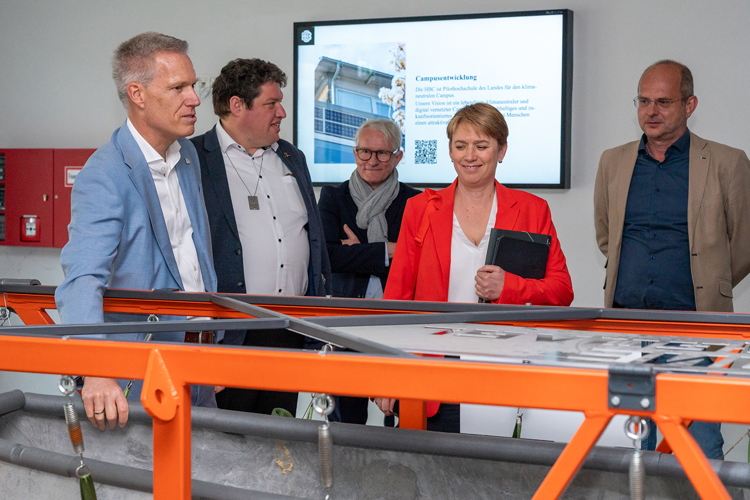 Bundestagsabgeordnete Dr. Anja Reinalter erklärte: „Die Innovationskraft der HBC beeindruckt mich immer wieder aufs Neue. Hochschulen wie die HBC sind echte Zukunftsmotoren, gerade wenn es um Themen wie Nachhaltigkeit und Klimaneutralität geht. Deshalb setze ich mich für dafür ein, dass Bund und Länder beste Rahmenbedingungen für unsere Hochschulen schaffen”.