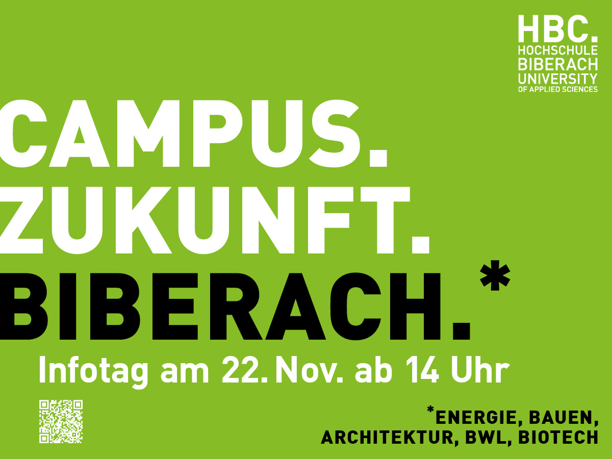 Deine Zukunft beginnt hier! Besuche unseren Study-Infotag am 19. November und entdecke, welche Studiengänge und Möglichkeiten an unserer Hochschule Biberach auf dich warten. Lerne Dozierende und Studierende kennen, lass dich inspirieren und finde heraus, wie dein Studium bei uns aussehen könnte.