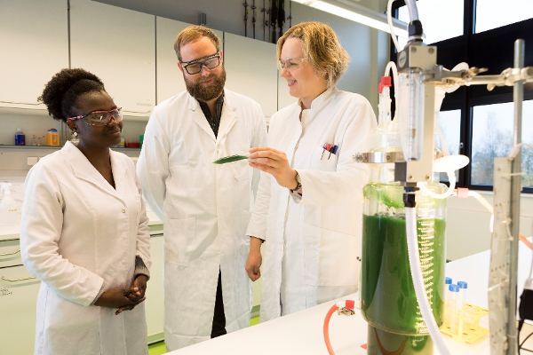 Um einen nahtlosen Übergang zwischen angeleiteten Praktikumsversuchen und der selbständigen Arbeit nach dem 5. Studiensemester zu schaffen, arbeitest du während deines Bachelorstudiums auch intensiv an Projektarbeiten. Dabei beschäftigen sich die Studierenden mit vorgegebenen oder selbstgewählten brisanten Fragestellungen, wie zum Beispiel der Wasseraufbereitung in Entwicklungsländern. In diesem Projektbeispiel ist es unseren Studierenden gelungen, durch Arsen verschmutztes Wasser mithilfe von Mikroalgen zu reinigen. Durch Anwendung dieser Technologie kann die Versorgung der Menschen mit unbedenklich trinkbarem Wasser ermöglicht werden. Andere Projektarbeiten befassen sich unter anderem mit dem Abbau von Plastikmüll in den Weltmeeren oder der Entwicklung von Nanocellulose und Hightech-Materialien für Medizin und Technik.