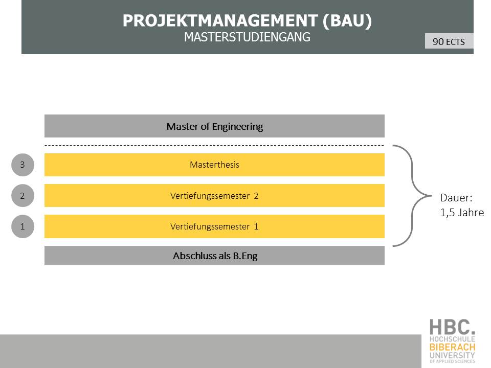 Flexibilität ist dir wichtig? Dann ist dieses Masterstudium wie gemacht für dich. Denn wir beschränken die Präsenztage im Masterstudiengang Projektmanagement (Bau) auf Mittwoch bis Samstag. Dadurch kannst du schon während deines Vollzeitstudiums wichtige praktische Erfahrungen sammeln und dein Master-Studium berufsbegleitend organisieren.
