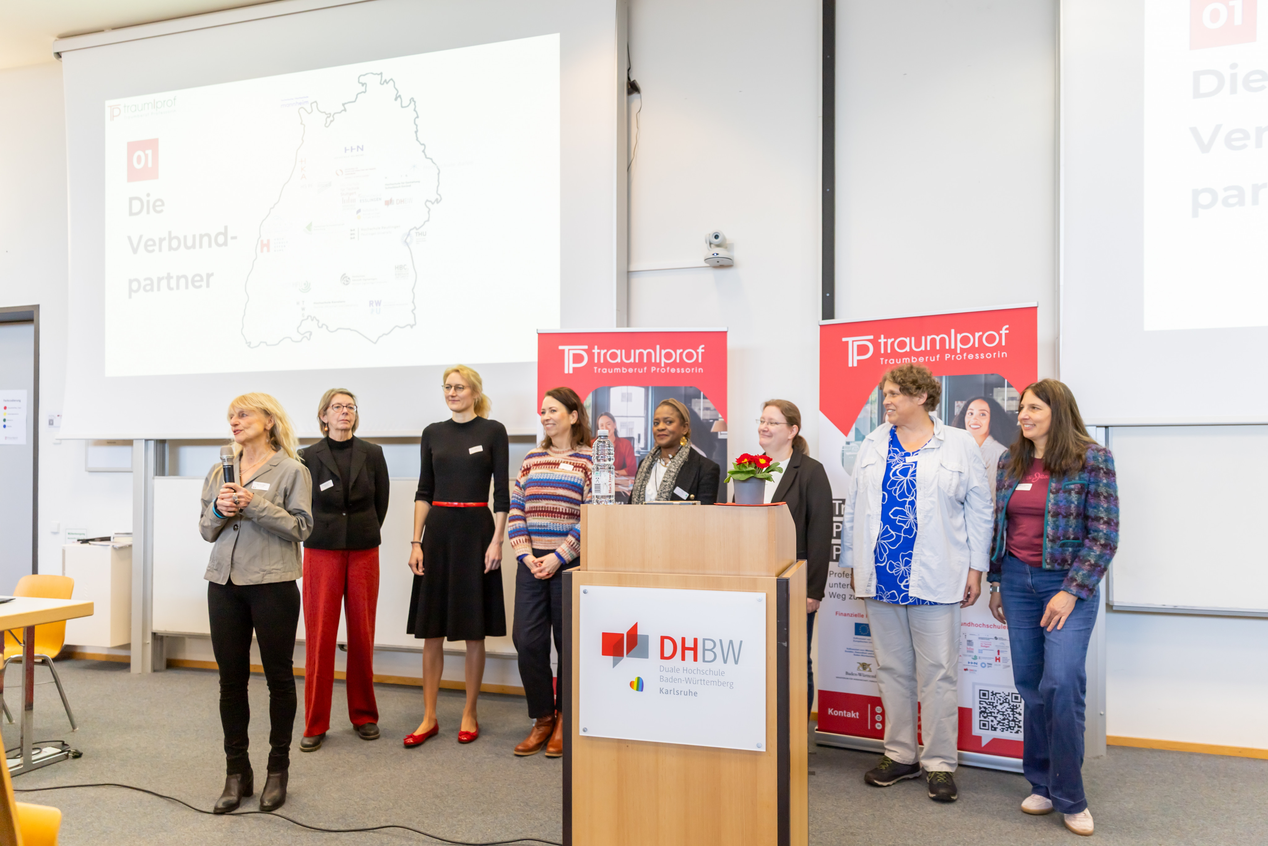 Mit einer feierlichen Auftaktveranstaltung für die dritte Runde und dem gleichzeitigen Abschluss der zweiten Runde hat das Verbundprojekt „Traumberuf Professorin Plus“ ein starkes Zeichen für die Zukunft der Professorenschaft gesetzt. Vertreter: innen aus Hochschulleitungen, Ministerium sowie Mentees und Mentor: innen kamen an der DHBW Karlsruhe zusammen, um Frauen auf dem Weg zur Professur zu unterstützen. Bereits nach nur zwei Jahren Projektlaufzeit konnten innerhalb dieses einzigartigen Verbundprojekts 26 Berufungen verzeichnet werden.
