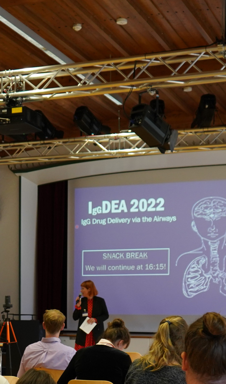 Beim Kongress wurde unter anderem aufgezeigt, welche Rolle inhalative Ansätze in der Behandlung von chronischen Lungenerkrankungen, bei Asthma oder auch bei infektiösen Lungenentzünden spielen können. Auch die intranasale Applikation wurde beleuchtet und beide Methoden gegeneinander abgeglichen. So ermöglicht die intranasale Anwendung eine Umgehung der Blut-Hirn-Schranke und stellt somit eine gute Möglichkeit dar, das Zentralnervensystem zu erreichen. Beim Kongress wurden Studien präsentiert, die die Transportwege über die Schleimhaut untersuchen und zeigen, wie viel Wirkstoff dabei ins Gehirn gelangt. Die Option Antikörper gezielt ins Zentralnervensystem einbringen zu können kann beispielsweise genutzt werden, um Multiple Sklerose minimal invasiv behandeln zu können.