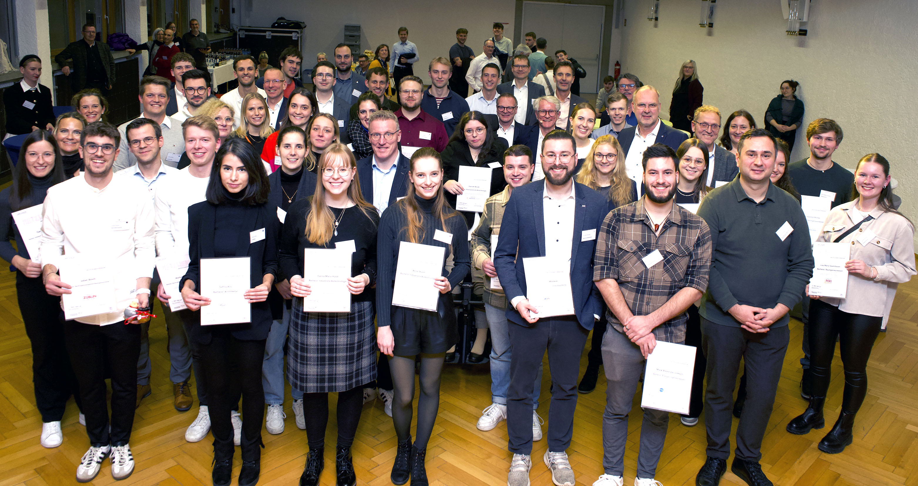 Herausragende Leistungen sowie das Potenzial und die Zukunftsperspektiven junger Talente standen im Mittelpunkt einer Akademischen Feier an der Hochschule Biberach (HBC) zu Beginn dieser Woche. Bei der Netzwerkveranstaltung Deutschlandstipendium wurden 34 Studierende aus allen Fakultäten für ihre sehr guten Studienerfolge und ihr gesellschaftliches Engagement ausgezeichnet. Mit dabei waren auch die 23 Unternehmen, die diese Stipendien in den Bachelor- und Master-Studiengängen der HBC stiften sowie Vertreter*innen aller Studiengänge.