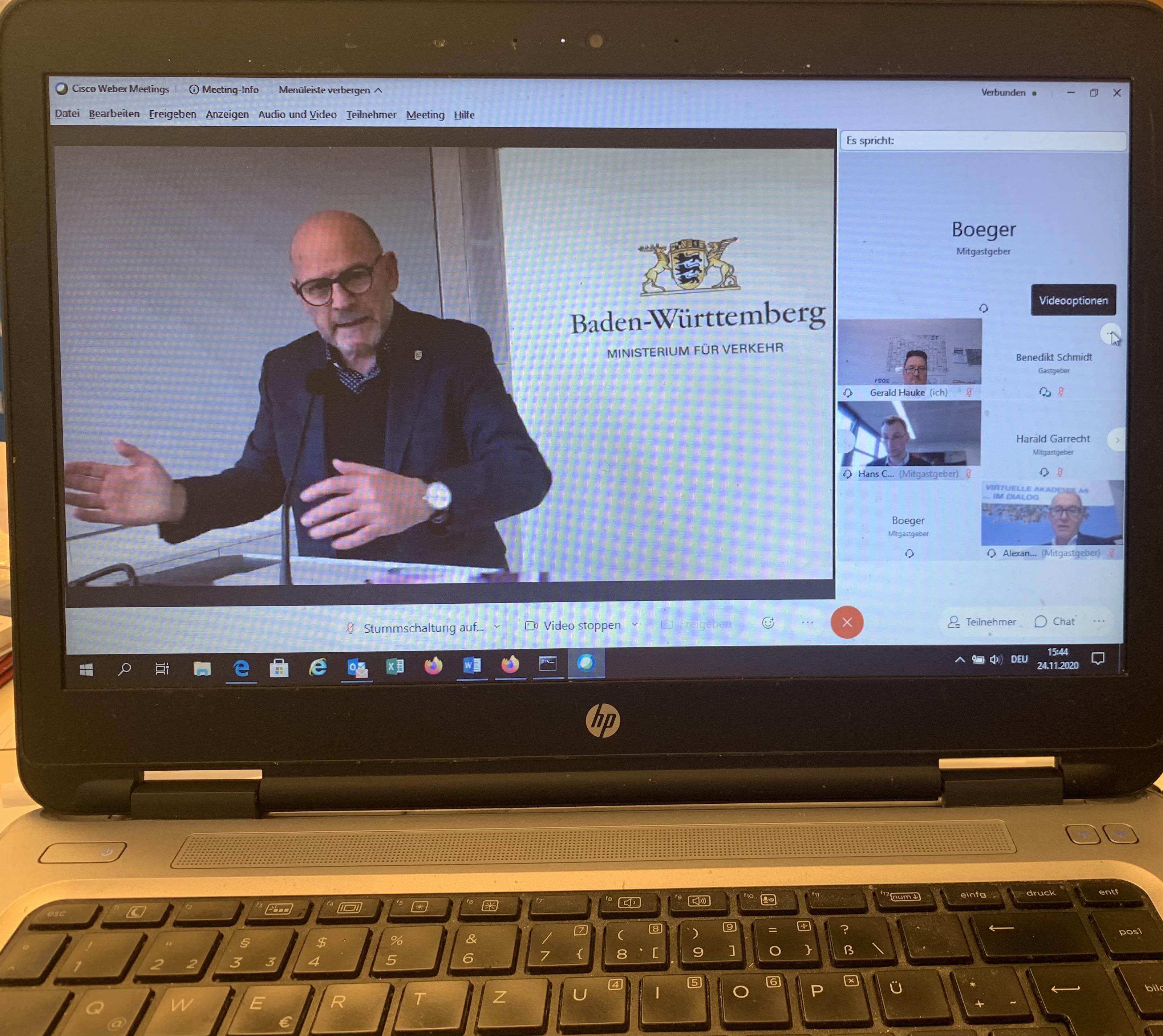 Eröffnet wurde die Veranstaltung durch ein Grußwort von Winfried Hermann MdL Minister für Verkehr in Baden-Württemberg. Minister Hermann ging in seiner Grußbotschaft lobend auf die zeitlichen Erfolge bei der Realisierung des Ausbaus der A6, derzeit das größte Verkehrsinfrastrukturprojekt in Baden-Württemberg, ein Er machte deutlich, dass das Land große Hoffnungen bezüglich der Effizienzsteigerung beim Einsatz von sogenannten BIM-Modellen auch und gerade bei der Realisierung großer Verkehrsinfrastrukturmaßnahmen setzt.