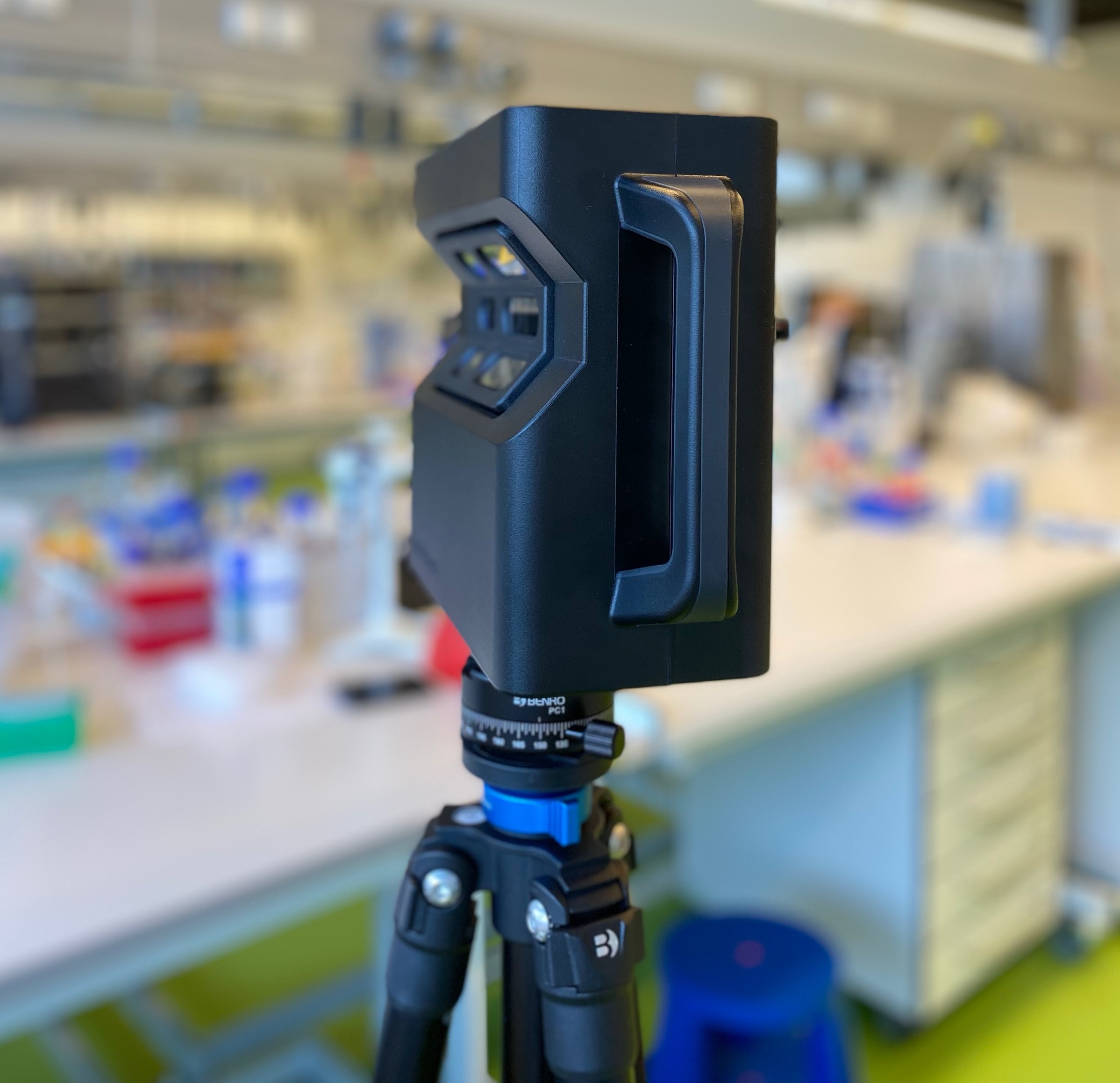 Yunus Yazici und Manuel Balmer führen gemeinsam das Startup-Unternehmen "Vigemo". Mittels einer hocheffizienten Softwarelösung erstellen sie digitale Zwillinge von Objekten - so auch von unseren Laboren der Biotechnologie. Für den virtuellen Rundgang haben sie die Räume zunächst mit einer speziellen Kamera gescannt und anschließend in ein originalgetreues 3D-Modell verwandelt.