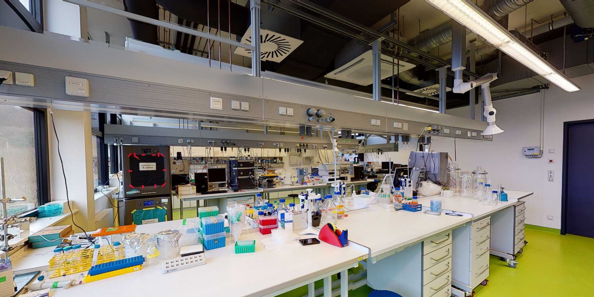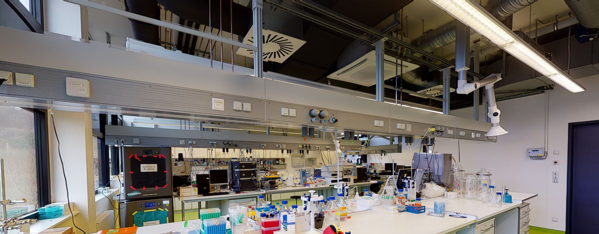 Wie sieht es eigentlich in einem richtigen Labor aus? Wie sind die Räumlichkeiten der Fakultät Biotechnologie an der Hochschule Biberach (HBC) ausgestattet? In Zeiten von Corona, wenn Laborbesichtigungen vor Ort nicht stattfinden können, sind diese Fragen gar nicht so einfach zu beantworten. Deshalb bieten wir Interessierten nun mit einem 3D-Modell die Möglichkeit, sich die Labore der HBC virtuell und ortsunabhängig anzusehen: Ein digitaler Zwilling ermöglicht StudienbewerberInnen und WissenschaftlerInnen einen Blick in unsere Räumlichkeiten.