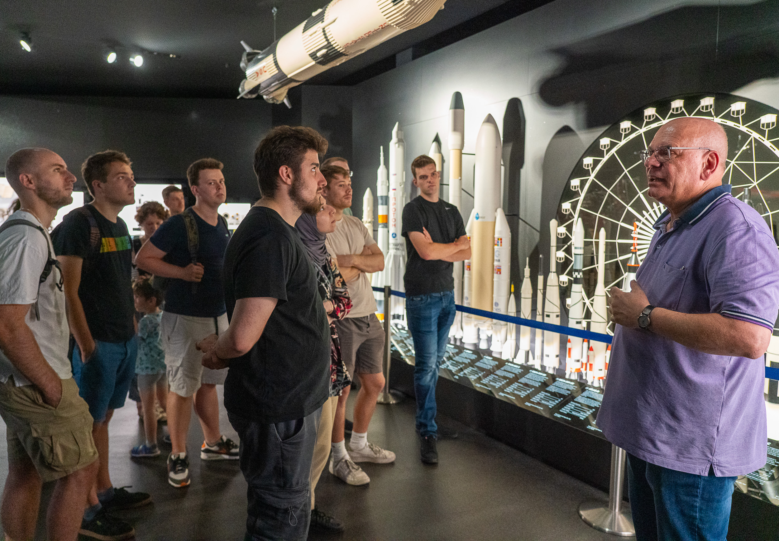 Die Führung durch die Luft- und Raumfahrt und den Bereich Energie und Motoren ist nicht nur informativ, sondern auch inspirierend und lehrreich. Denn in der Luft- und Raumfahrt spielen Energieeffizienz und Thermodynamik eine zentrale Rolle, da die Anforderungen an die Antriebssysteme extrem hoch sind. Flugzeuge und Raumfahrzeuge müssen mit minimalem Energieaufwand maximale Leistung erbringen. Diese Prinzipien finden sich auch im Energie-Ingenieurwesen wieder, wo die Optimierung von Energiesystemen und die Entwicklung effizienter Technologien im Vordergrund stehen. Durch die Ausstellung zur Luft- und Raumfahrt erlangen die Studierenden ein tieferes Verständnis für die praktischen Anwendungen und Herausforderungen der Energieeffizienz.