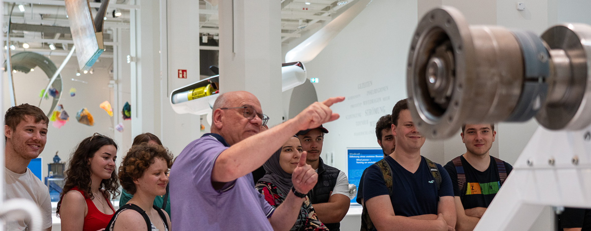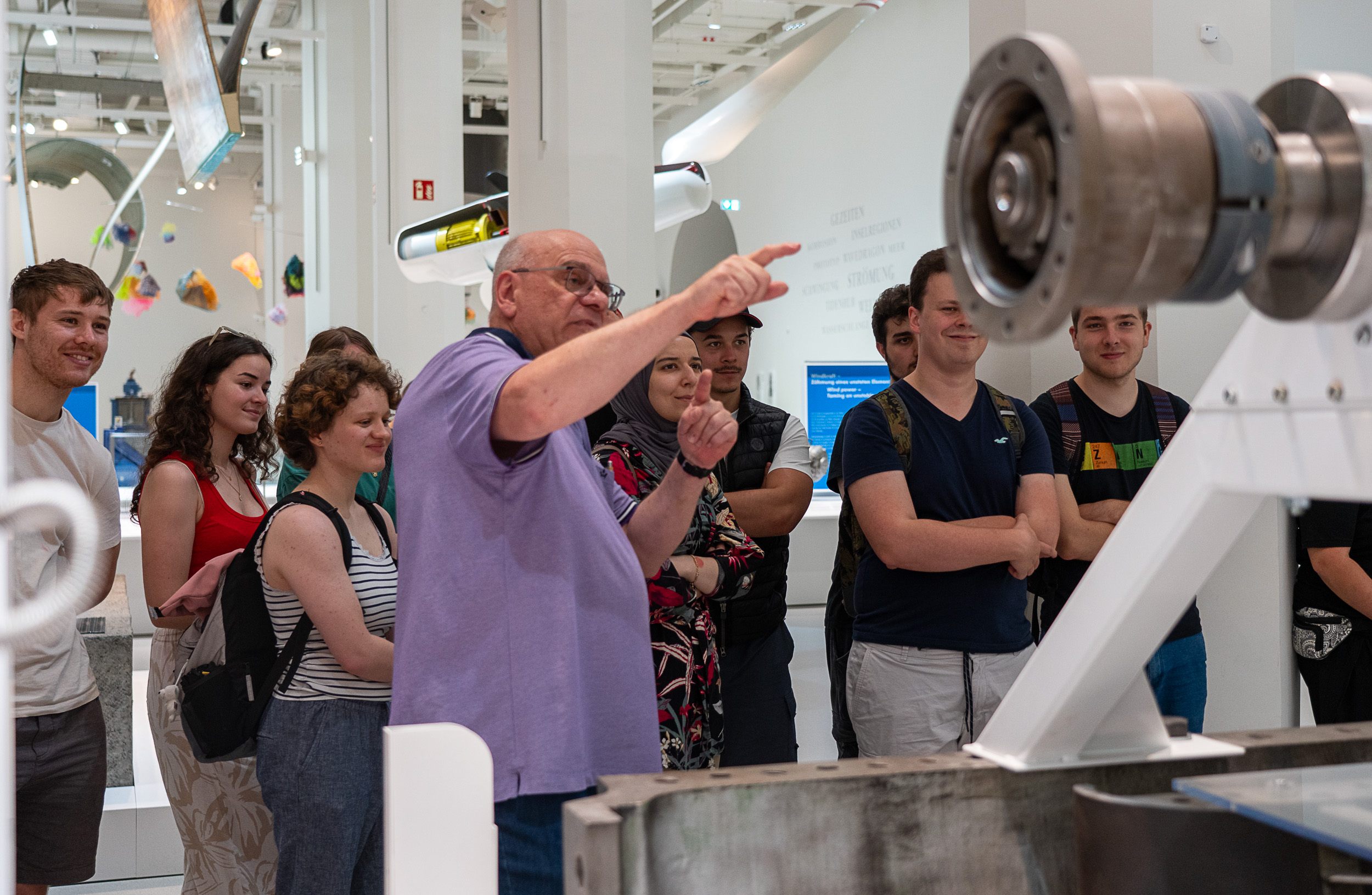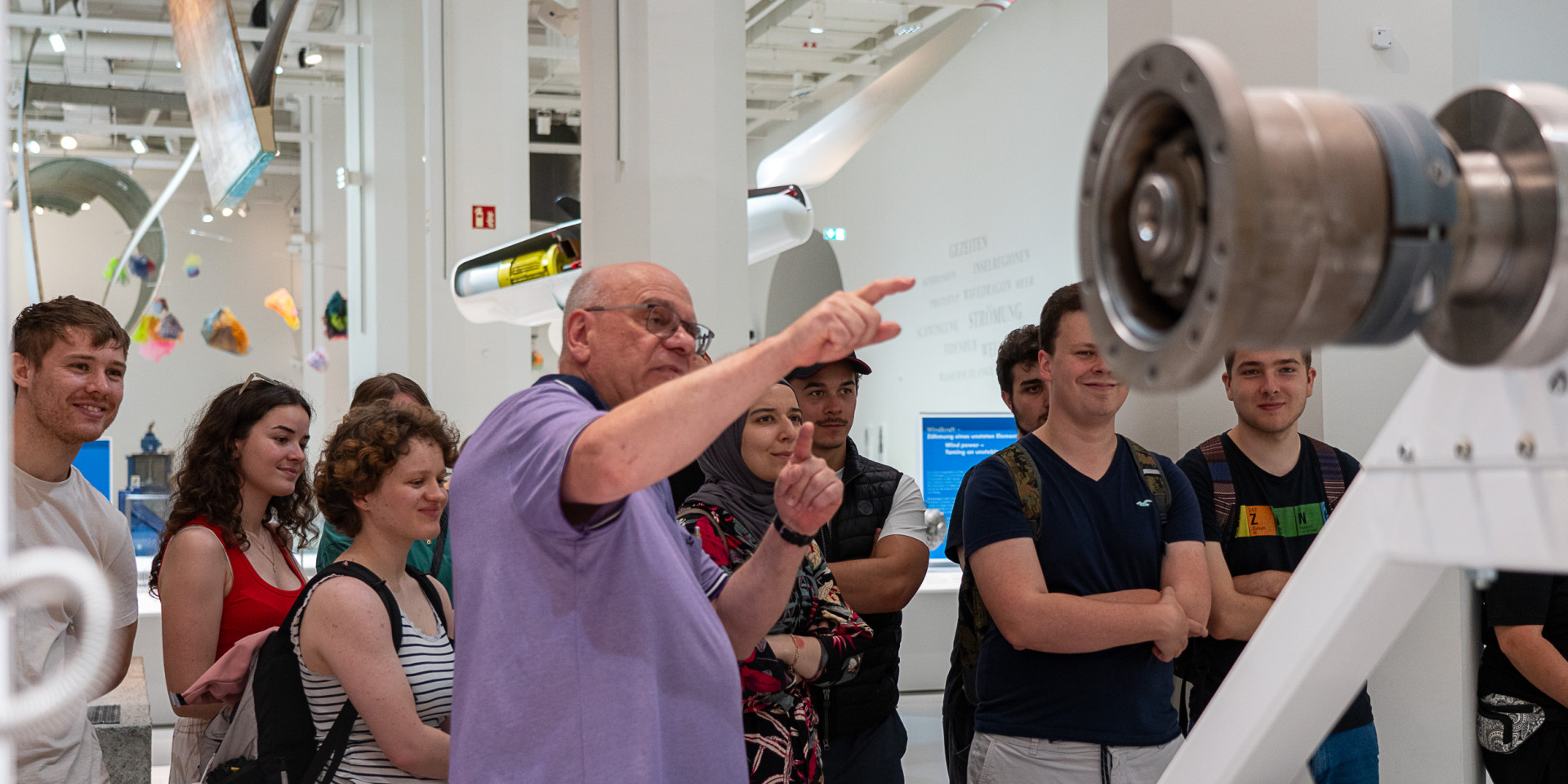 „Durch die Kombination von theoretischen Grundlagen und praktischen Beispielen aus den Ausstellungen im Deutschen Museum können die Studierenden des Studiengangs Energie-Ingenieurwesen ein umfassenderes und anwendungsorientiertes Wissen erlangen“, erklärt Prof. Haibel. Diese praxisnahen Einblicke sind nicht nur motivierend, sondern auch entscheidend für die Entwicklung innovativer und nachhaltiger Lösungen im Bereich der Energie- und Gebäudetechnik. Das kommt bei den Studierenden gut an – sie hören aufmerksam zu und stellen viele Fragen. „Ich finde es mega cool und interessant und es macht die Einblicke der Vorlesung greifbar“, sagt Luisa Hartnagel, Studentin im 4. Semester. Auch ihrem Kommilitone Philipp Darius Ebner, Student im 6. Semester, gefällt der Blick hinter die Kulissen: „Die Exkursion ist super. Prof. Haibel liefert viele Infos drumherum