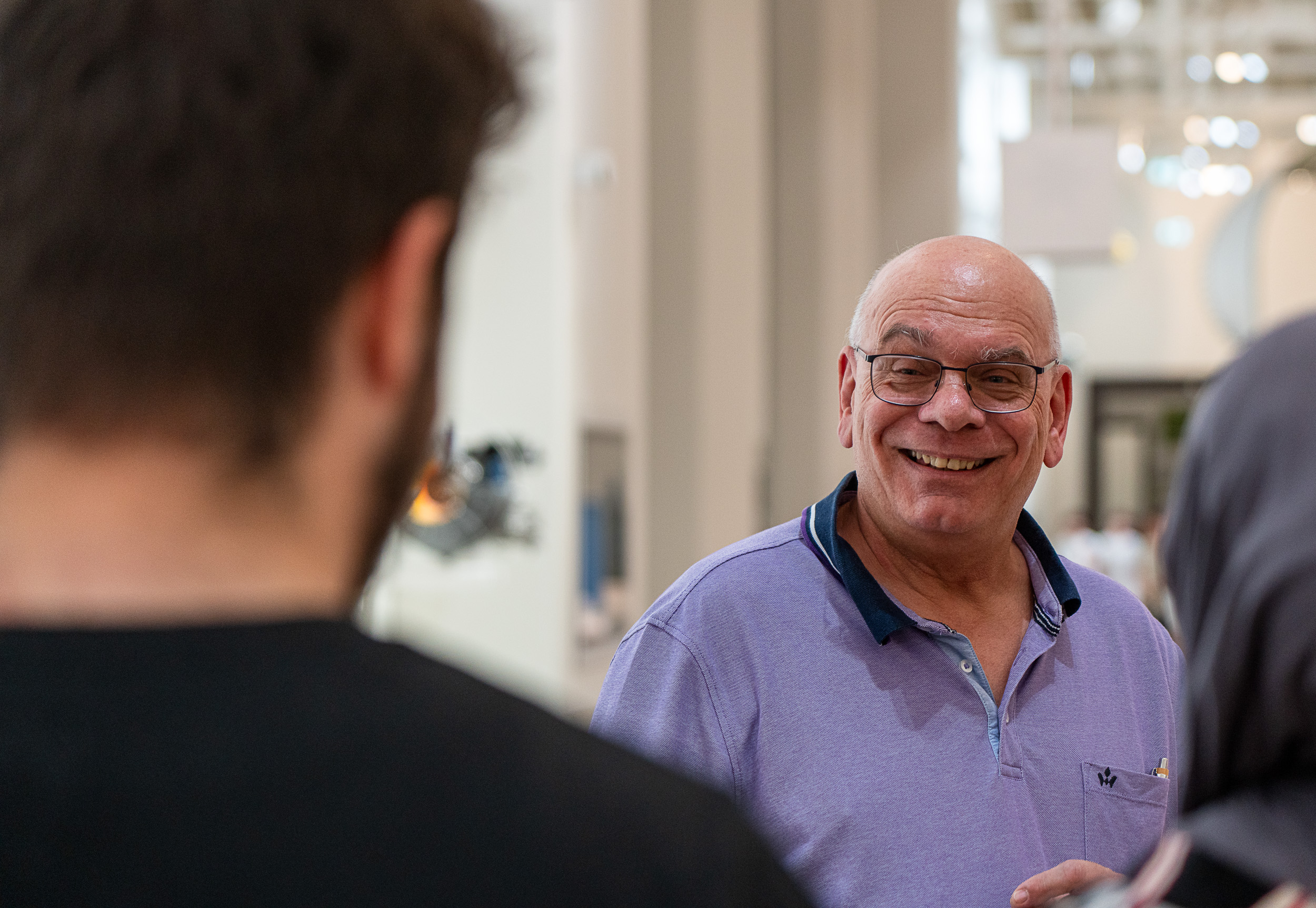 "Willkommen in meinem deutschen Museum", begrüßt er seine Gruppe von rund 20 Studierenden, bevor er sie mit seiner euphorischen und ansteckenden Art durch die Ausstellungen führt. Besonders das Bergwerk und das Planetarium haben es ihm angetan, und früher kam er jedes Jahr mit seiner Tochter zum „Sterne gucken“ hierher. Heute ist er Mitglied im Verein der Freunde des Deutschen Museums.