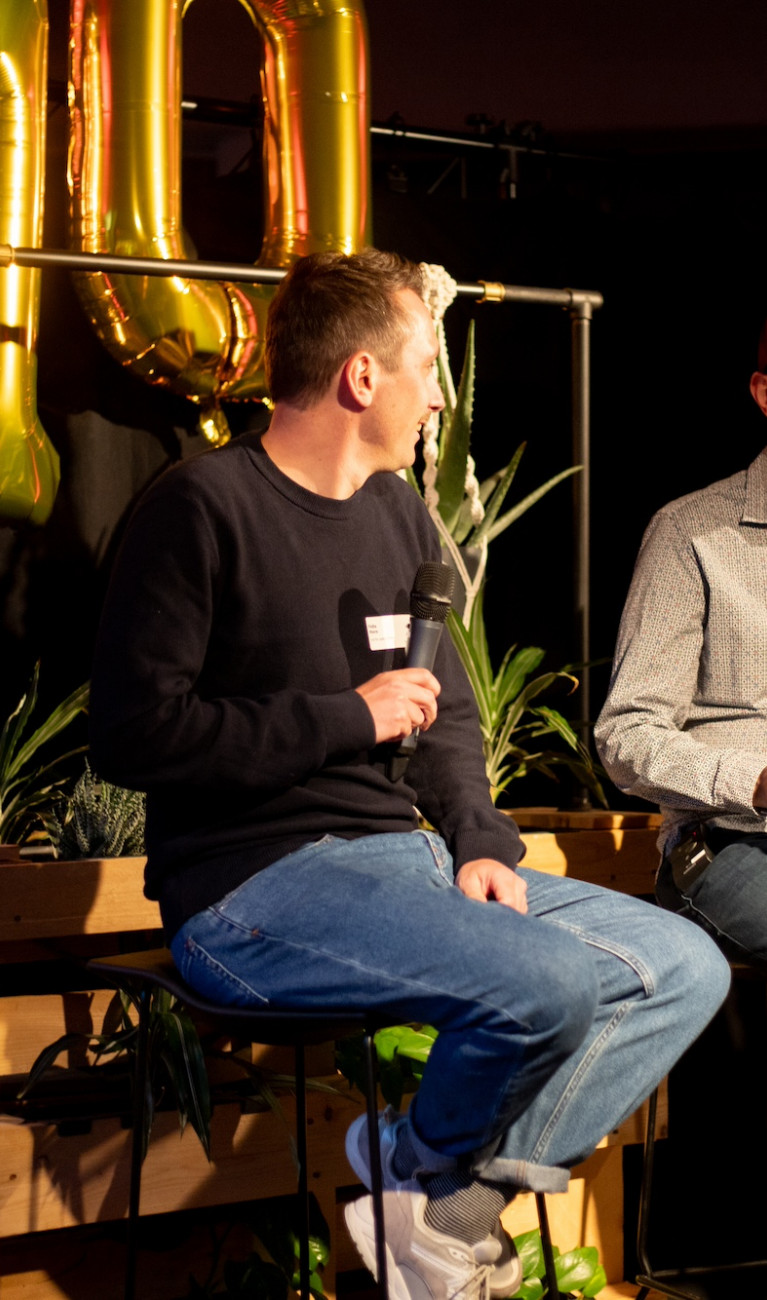 Hauptgast im Gründungsgespräch war an diesem Abend Felix Horn, Geschäftsführer des Startups out for space aus Kißlegg. Out for space hat mit dem Nature Tech Material karuun eine auf der Pflanze Rattan basierende Alternative zu Kunststoffen geschaffen. Das Startup und die HBC sind dabei bereits seit den Anfängen der Gründung vor rund zehn Jahren verbunden, als das Gründungsteam erste Entwicklungen ihres Produkts im Rahmen eines Förderprogramms an der HBC durchführte. Im Gründungsgespräch gibt Geschäftsführer Felix Horn Einblicke in die Geschichte des Startups und seinen persönlichen Weg in der Startup Szene. So hatte er als erster Mitarbeiter des Startups gestartet, die Supply Chain des Unternehmens aufgebaut und immer weitere Aufgaben übernommen. Ein großer Schritt dabei war die Übernahme der Geschäftsführung, gemeinsam mit einem Co-Geschäftsführer, als sich die Gründer aus der Führung des Unternehmens zurückzogen. Felix Horn selbst bewundert den Willen und die Durchhaltungskraft aller Startup-Gründenden und will Mut machen, eigene Ideen zu verfolgen.